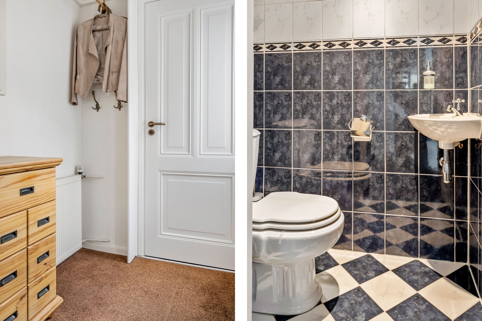 Via de zij-entree kom je in de hal met toegang tot het toilet en de deur naar de woonkamer.