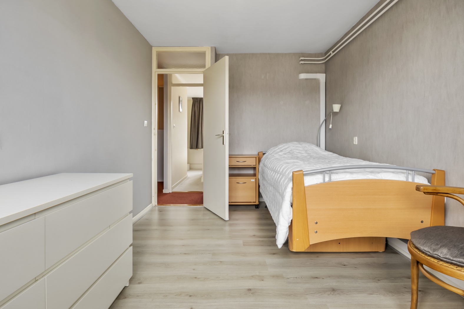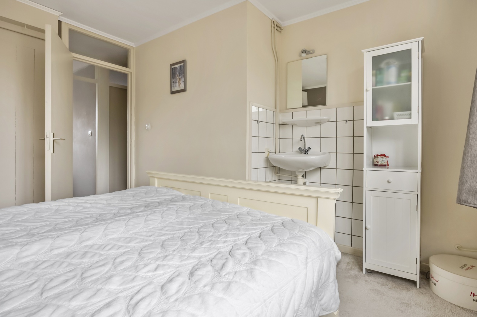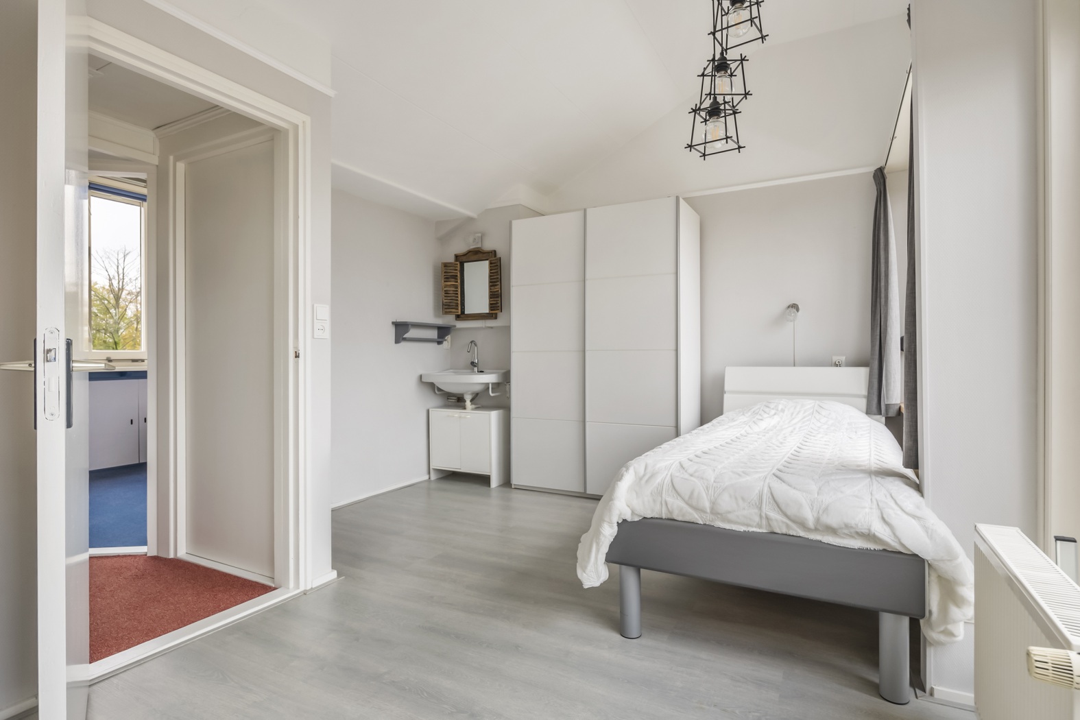 De slaapkamer aan de voorzijde is voorzien van een dakopbouw met dakkapel en beschikt over een praktische vaste kast waarin de cv-ketel is geplaatst.