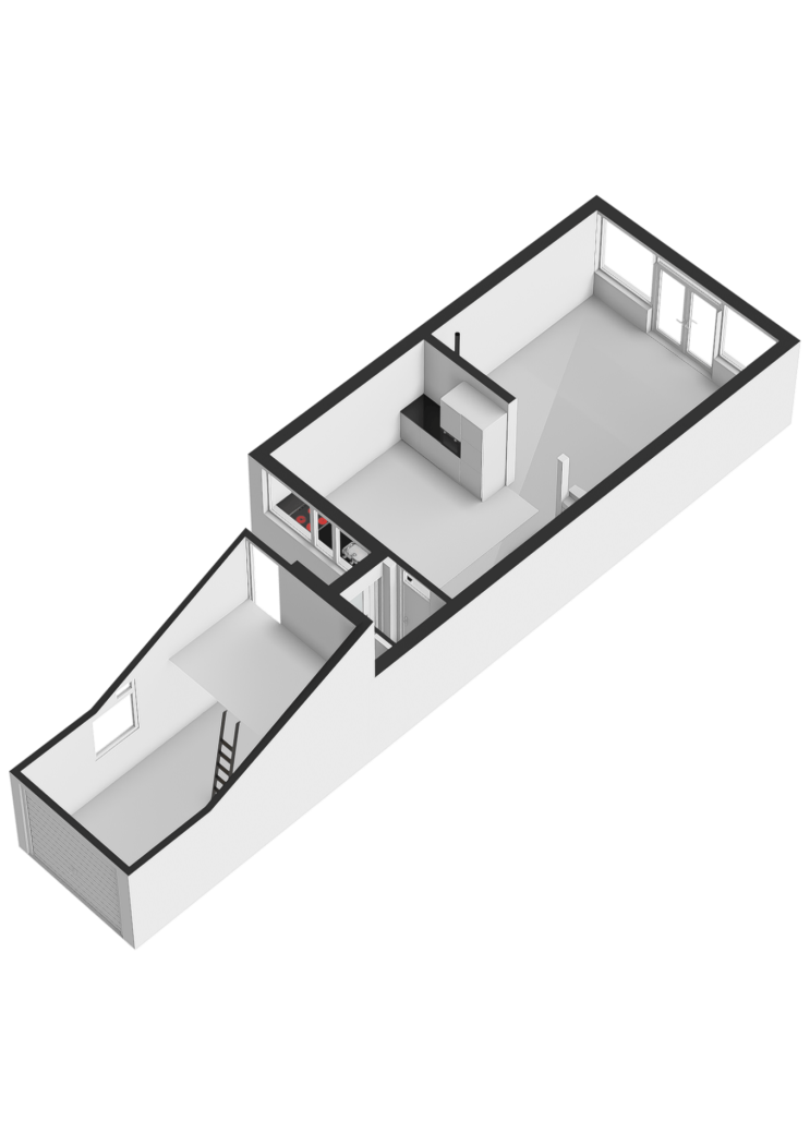 •Ruime woonkamer met open keuken: samen ca. 44 m²