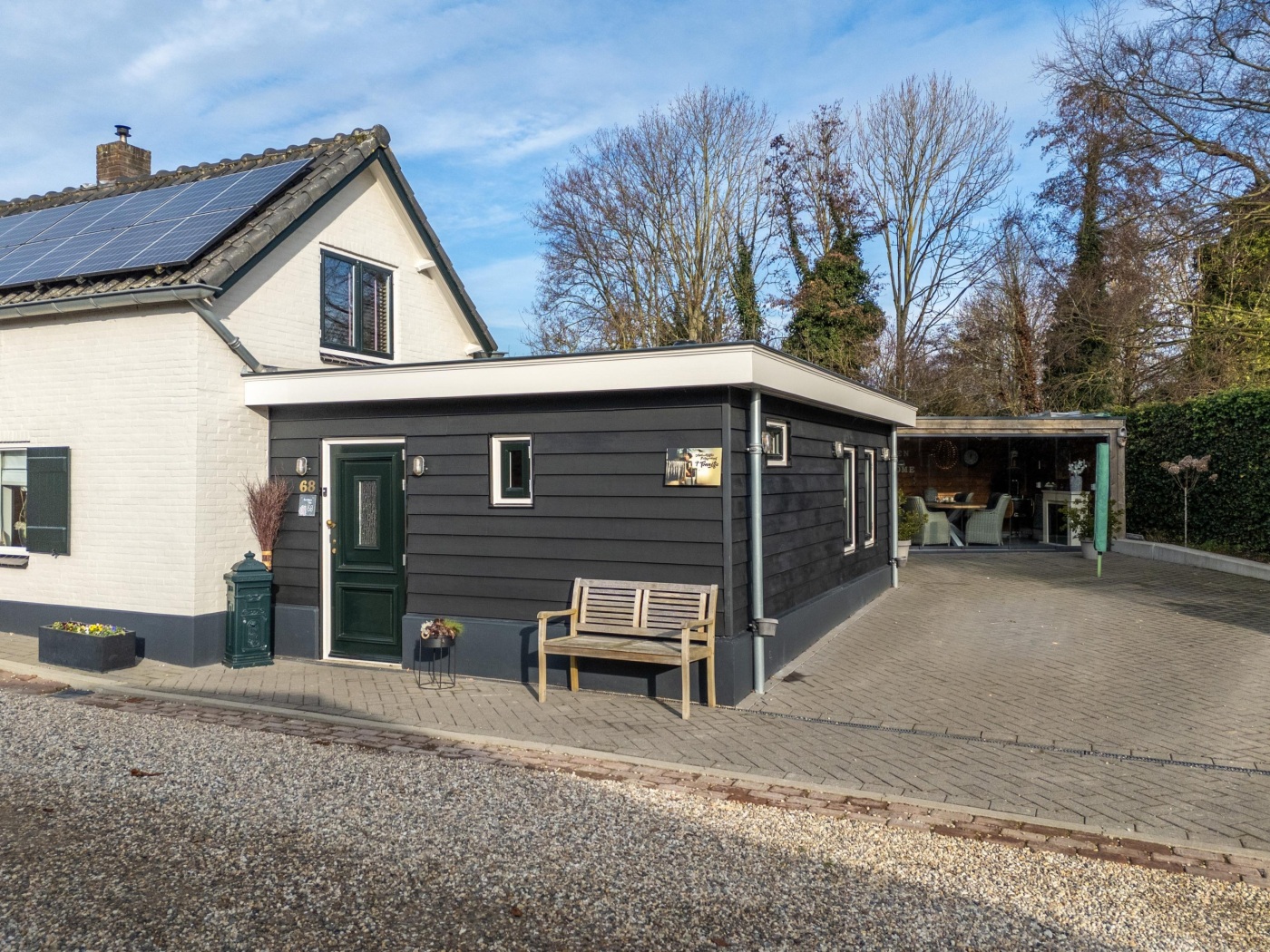 Via de entree in de recent gepotdekselde aanbouw stap je binnen in de hal met toiletruimte. Vanuit hier heb je toegang tot het woongedeelte én, op de begane grond, de slaapkamer en de badkamer.