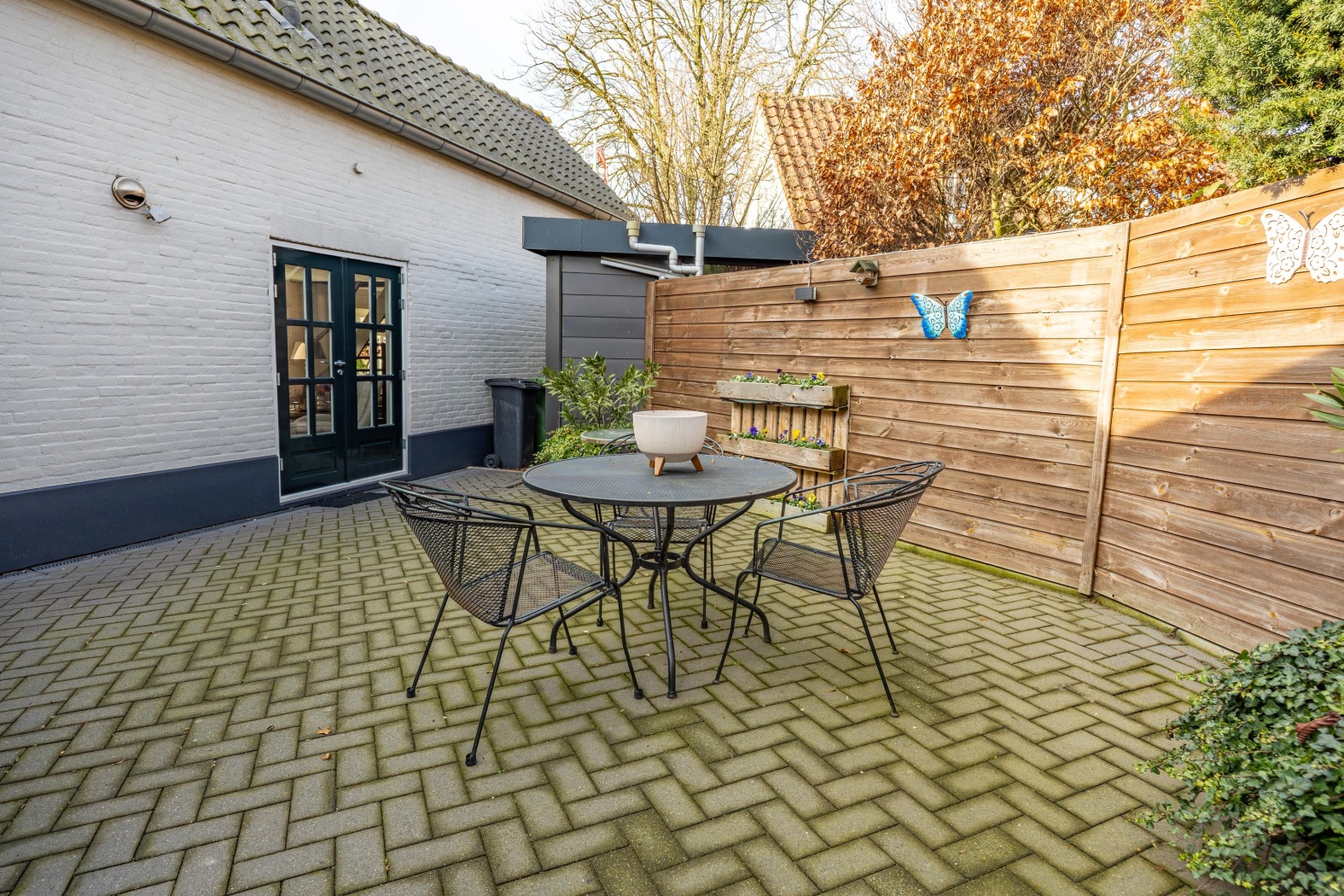 Buiten is het elke dag een beetje vakantie: een beschutte, onderhoudsvrije tuin die volledig is aangelegd met klinkerbestrating, met meerdere fijne zitplekjes. Onder de loungeoverkapping met glazen panelen zit je hier heerlijk lang buiten, en de berging maakt het geheel extra praktisch. Parkeren doe je op eigen terrein, met een oprit voor twee auto’s. Goed geïsoleerd en voorzien van zonnepanelen: instapklaar genieten in alle rust.