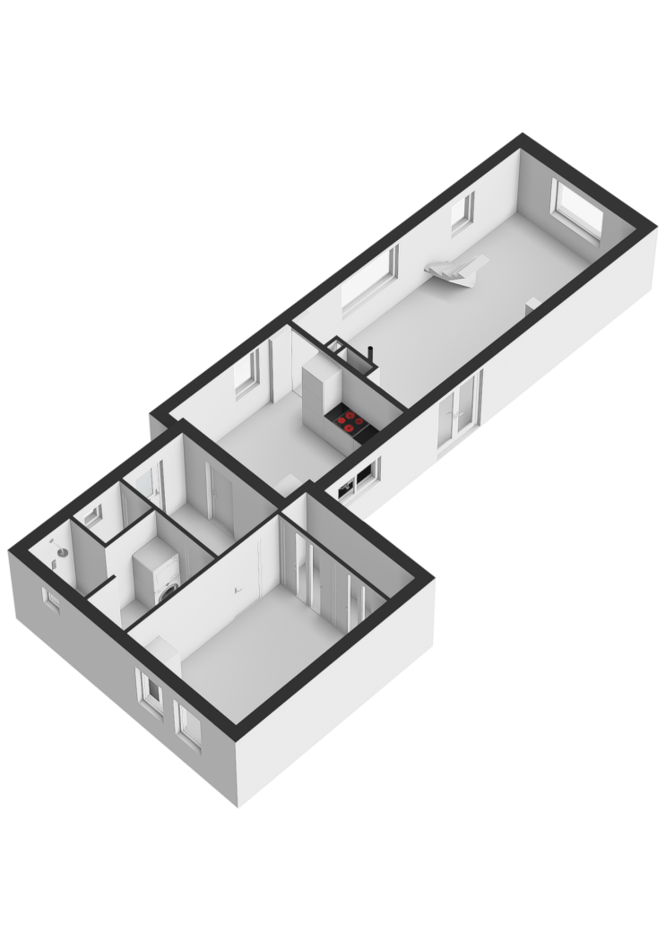 • Woonkeuken: ca. 12 m² met hoekkeuken en inbouwapparatuur