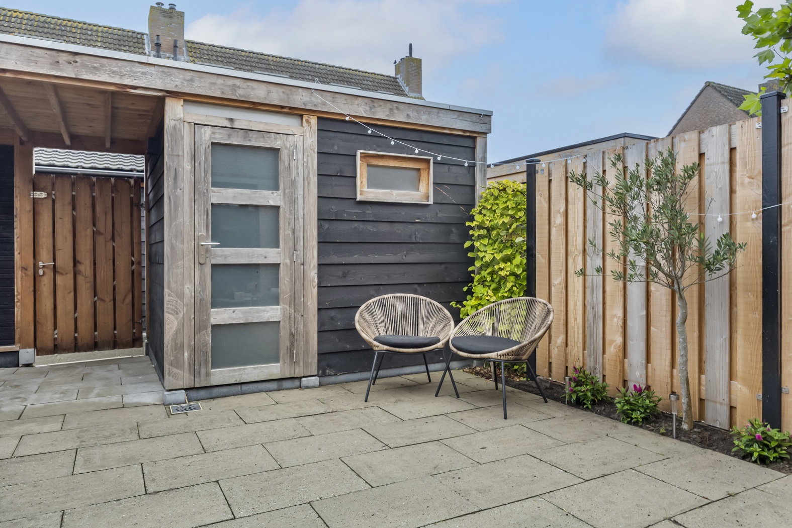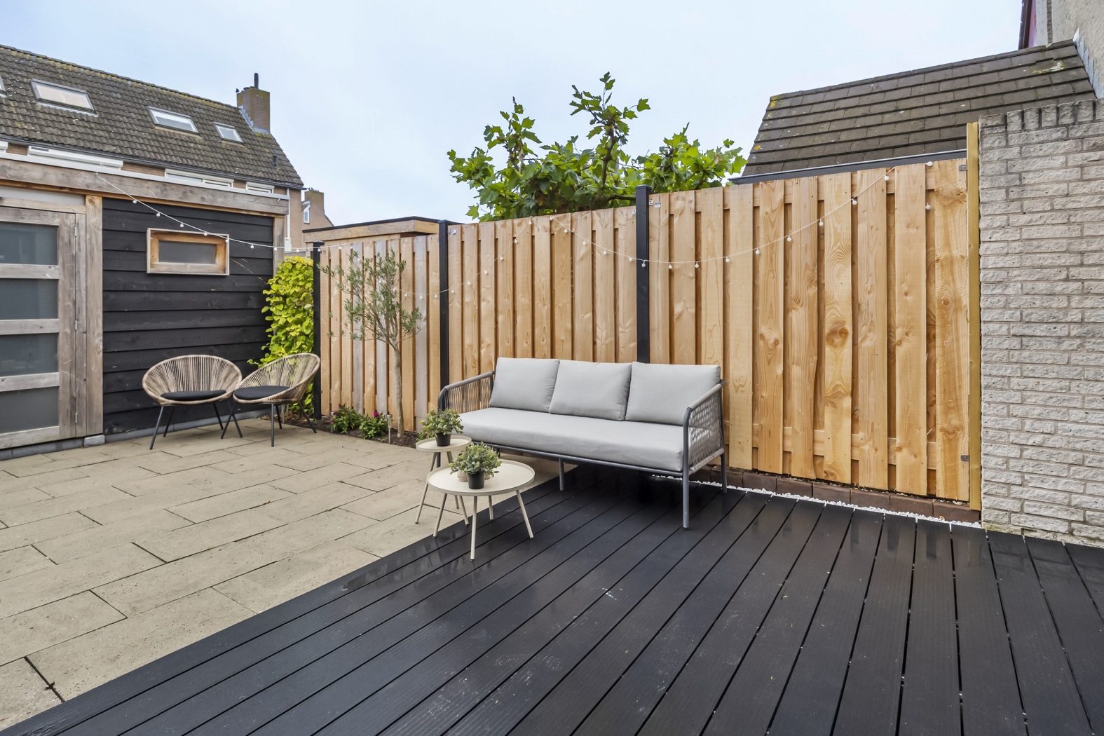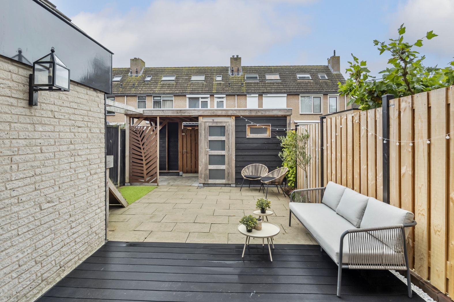 De achtertuin is een heerlijke plek om tot rust te komen. De combinatie van hout, steen en groen zorgt voor een speels en verzorgd geheel. Dankzij de achterom is de tuin gemakkelijk bereikbaar. Onder de overkapping met afgesloten berging kun je het hele jaar door genieten van het buitenleven. De berging is ideaal voor extra opslag of kan dienen als praktische hobbyruimte. De gevels zijn in 2019 gereinigd, gezandstraald en geïmpregneerd, waardoor het geheel een verzorgde en frisse uitstraling heeft.