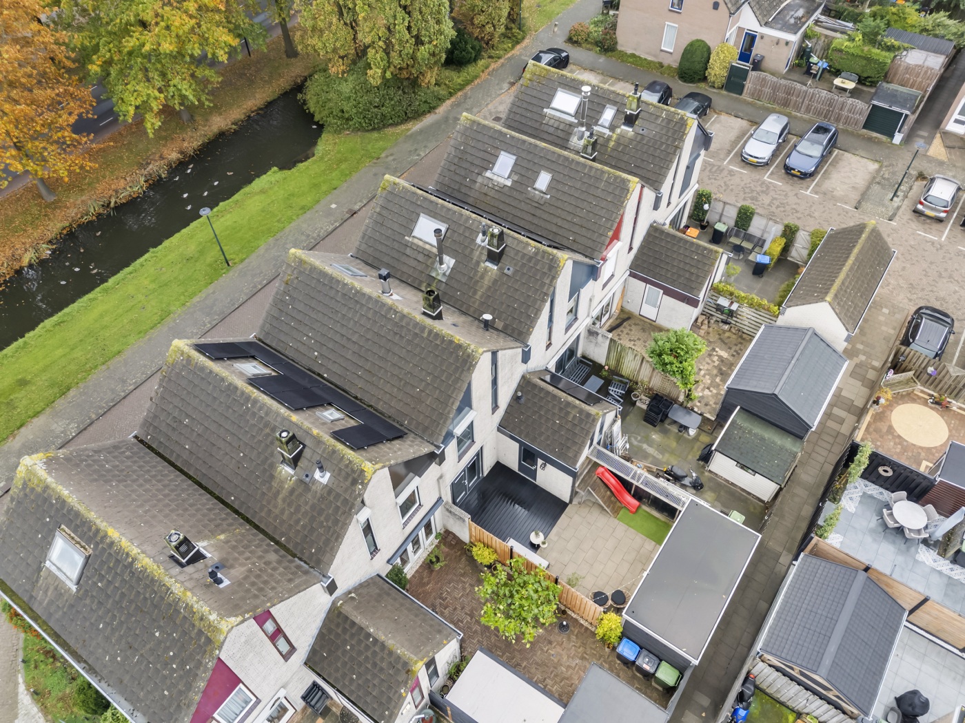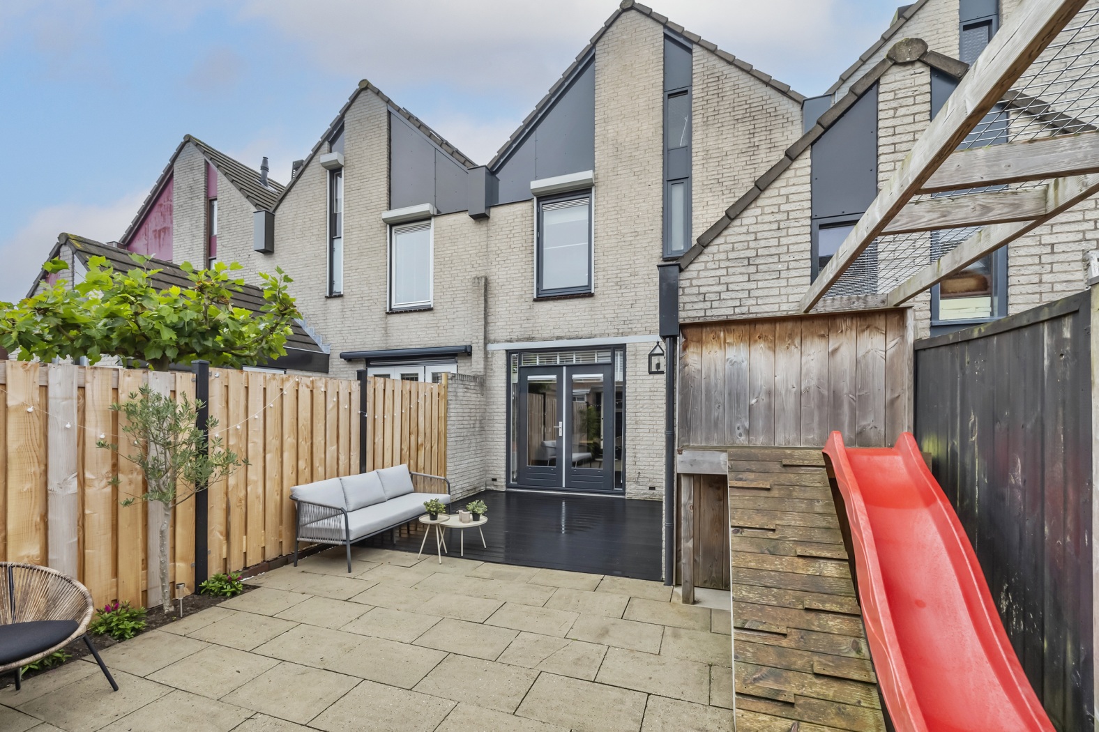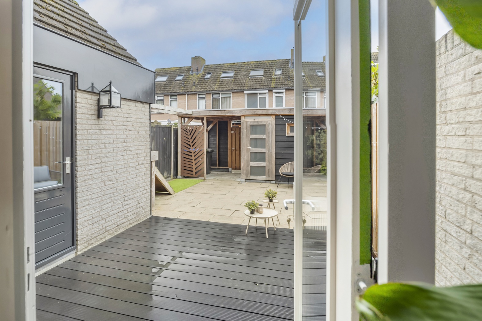 De achtertuin is een heerlijke plek om tot rust te komen. De combinatie van hout, steen en groen zorgt voor een speels en verzorgd geheel. Dankzij de achterom is de tuin gemakkelijk bereikbaar. Onder de overkapping met afgesloten berging kun je het hele jaar door genieten van het buitenleven. De berging is ideaal voor extra opslag of kan dienen als praktische hobbyruimte. De gevels zijn in 2019 gereinigd, gezandstraald en geïmpregneerd, waardoor het geheel een verzorgde en frisse uitstraling heeft.