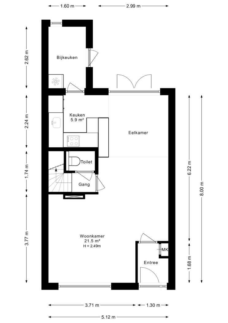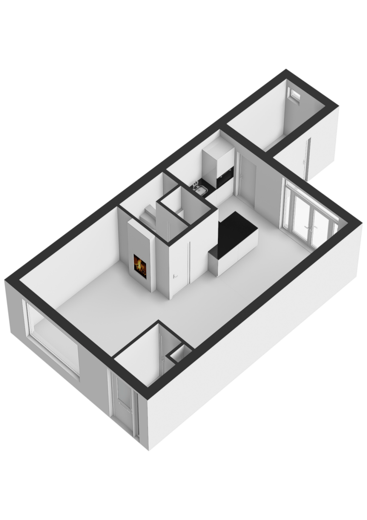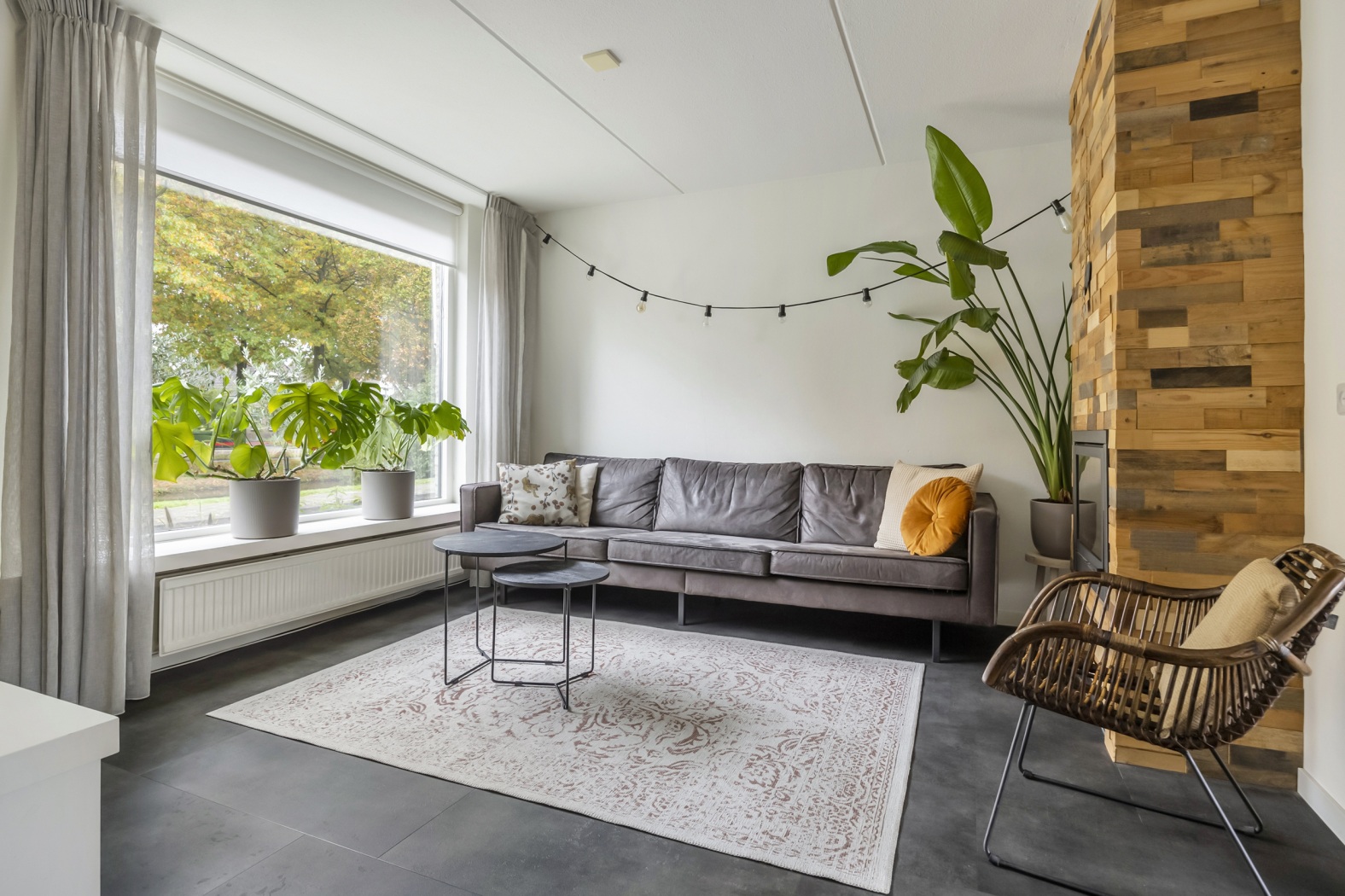 De voortuin is verzorgd en sfeervol aangelegd, waardoor de woning direct een uitnodigende indruk maakt. Via de hal stap je de gezellige woonkamer binnen — een lichte, prettige ruimte waar de houtkachel meteen zorgt voor warmte en sfeer. Grote ramen aan de voorzijde en openslaande deuren naar de tuin zorgen de hele dag door voor een prachtige lichtinval.