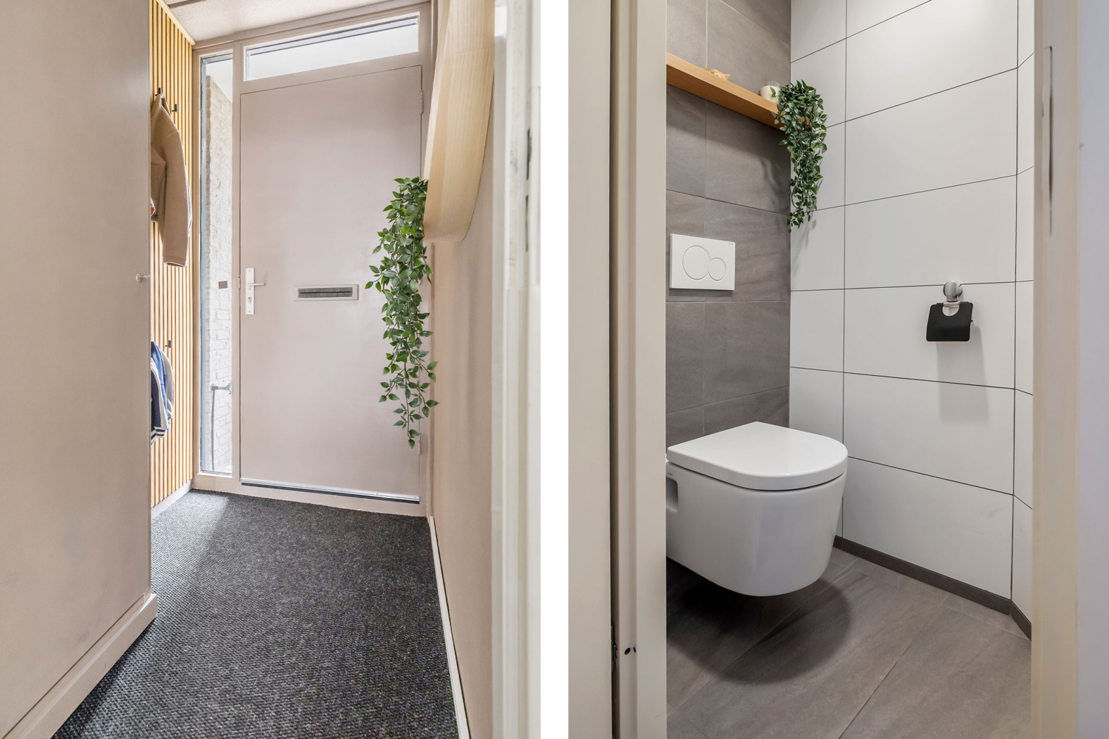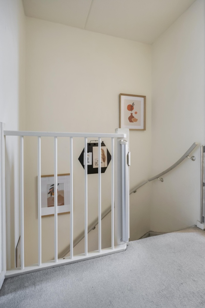 Via de trap in het halletje met toilet bereik je de eerste verdieping.