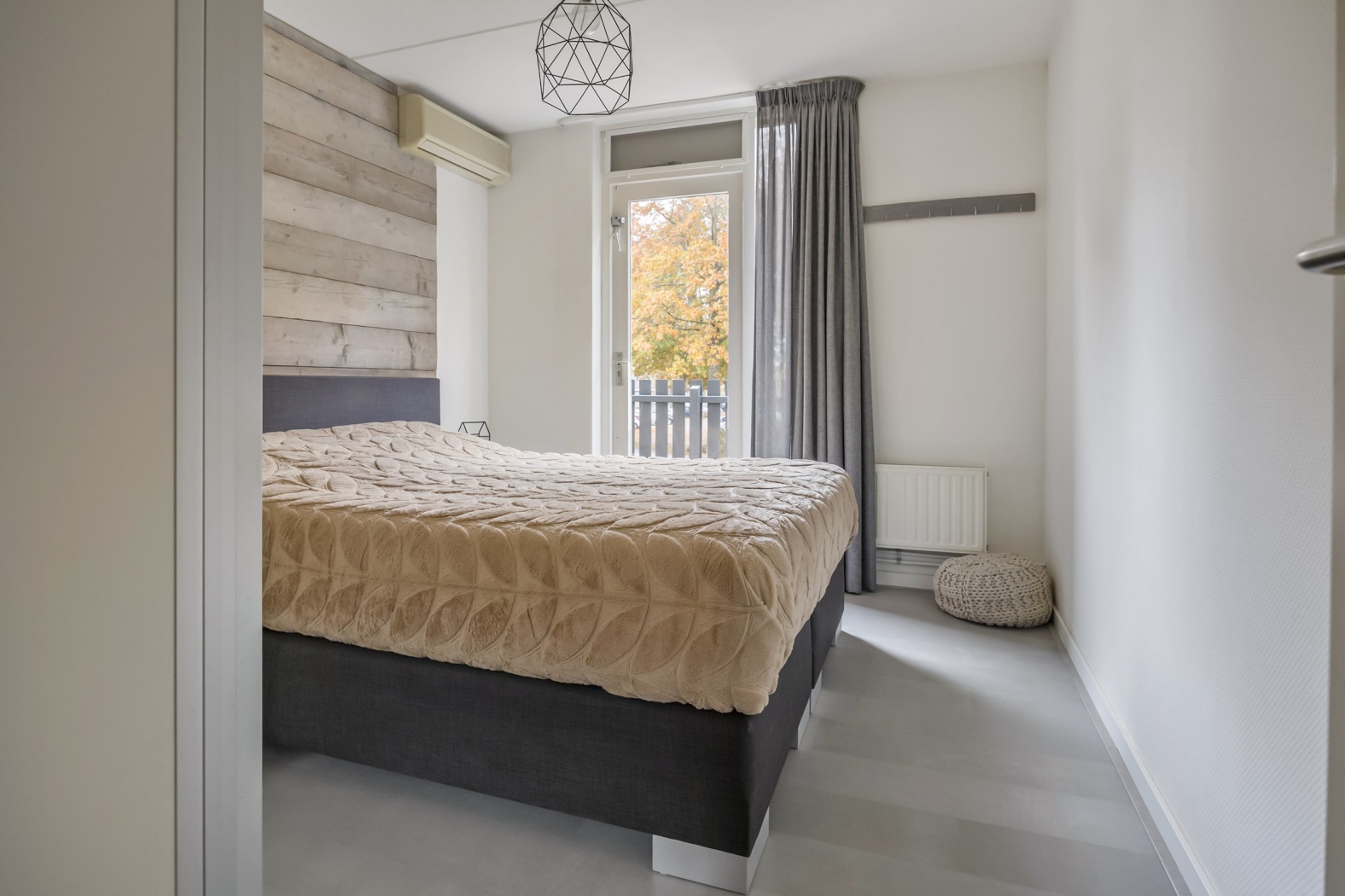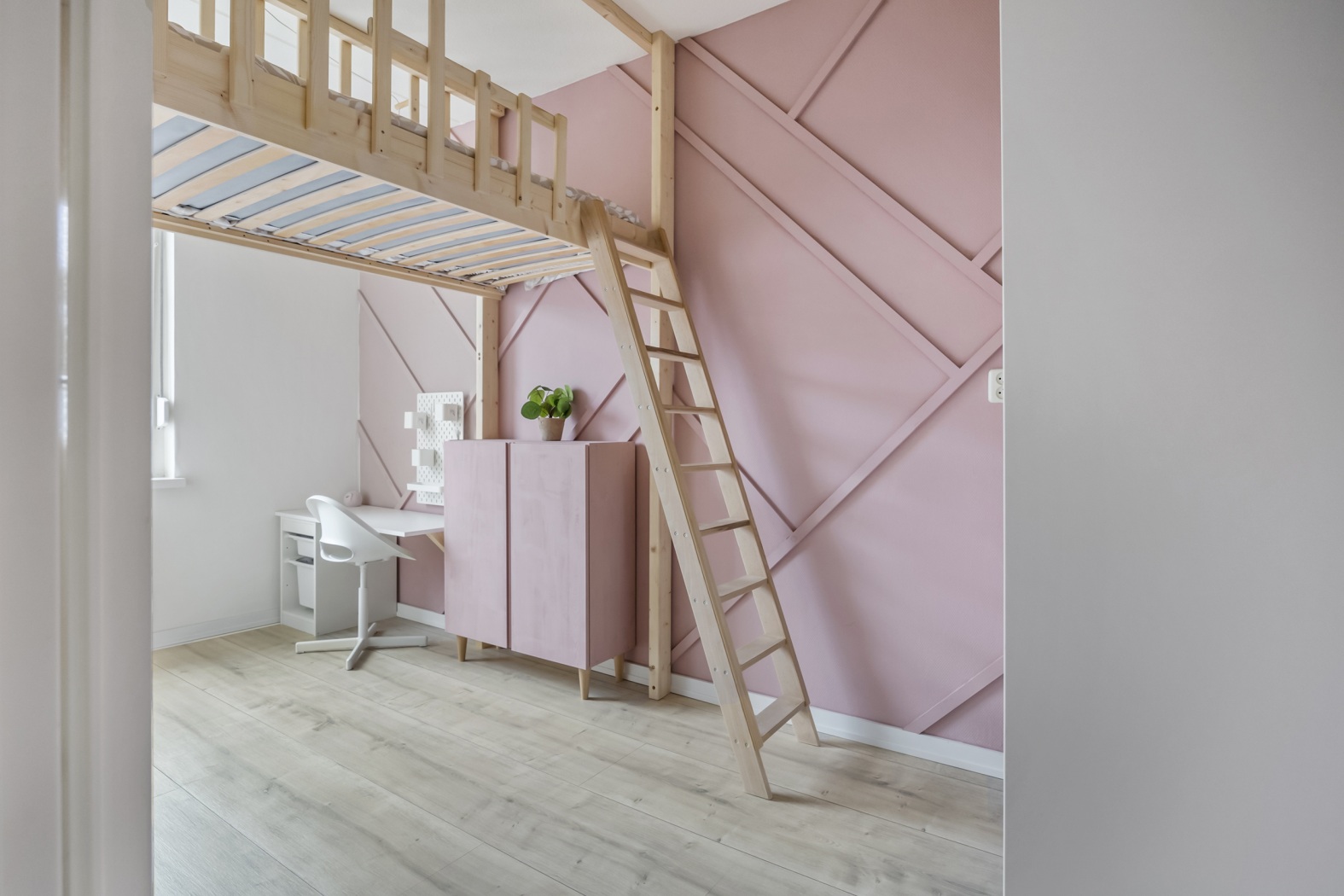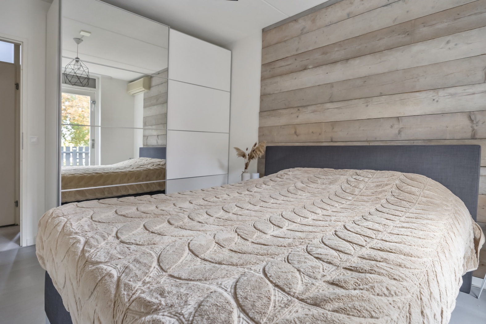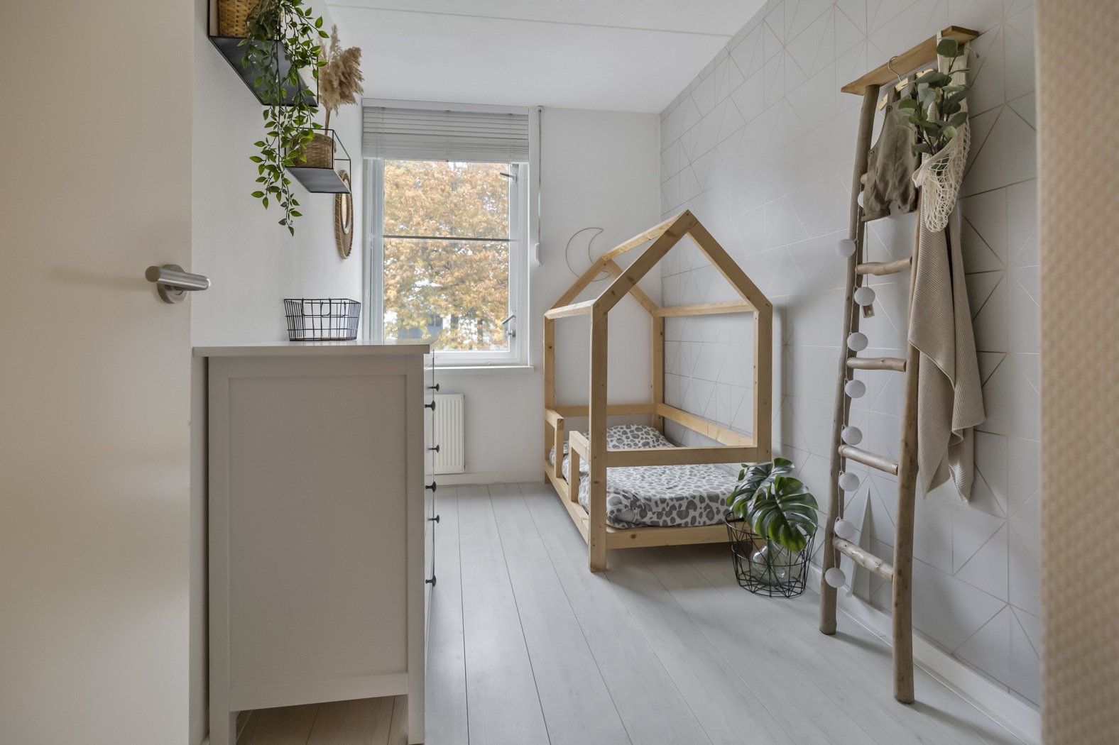 De tweede verdieping biedt een verrassend ruime vierde slaapkamer, met volop opbergruimte en mogelijkheden. De kamer heeft een dakraam en een speels gevelraam, waardoor er veel licht binnenvalt.