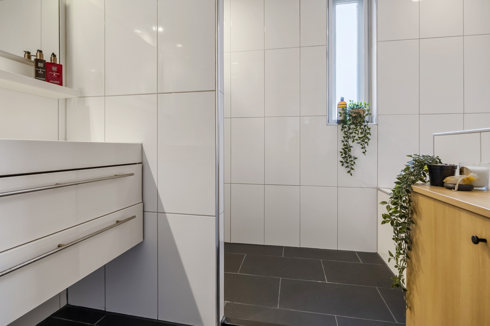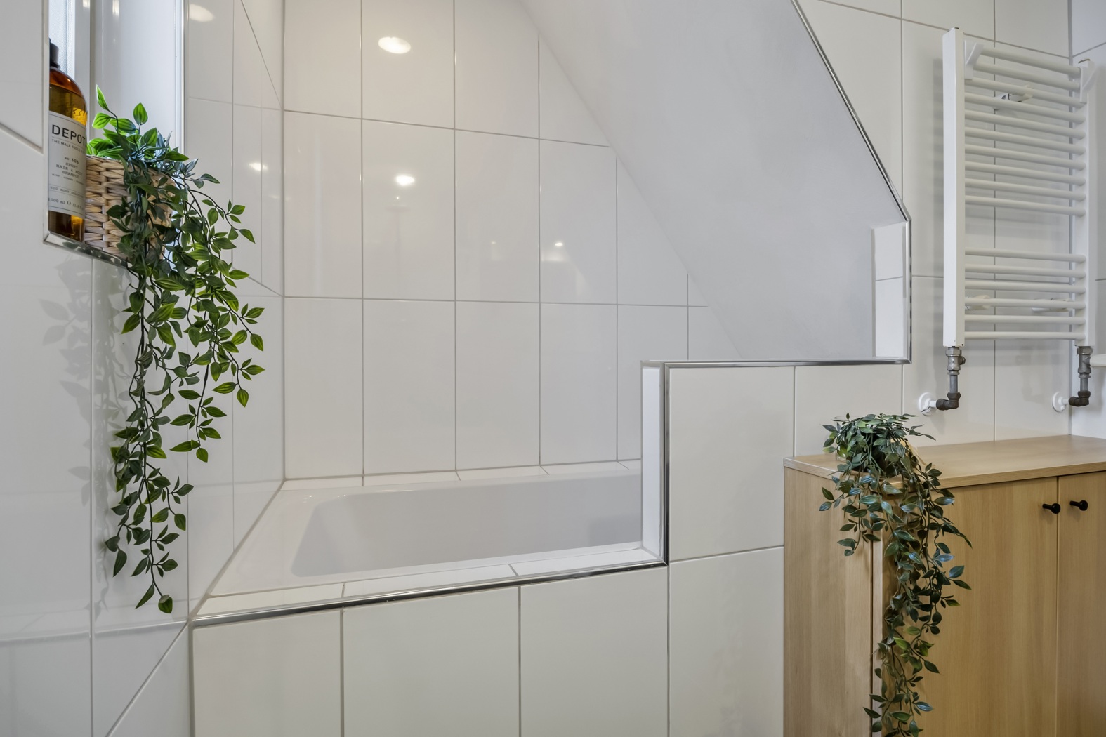 De badkamer is een echte blikvanger. Deze ruimte ademt rust en ontspanning, met een eigentijdse afwerking en een prettige indeling. Hier vind je een heerlijk ligbad om tot rust te komen, een inloopdouche en een modern wastafelmeubel. Dankzij de slimme opzet en het goede onderhoud voelt de badkamer ruim, fris en comfortabel aan — een plek waar elke dag goed begint.