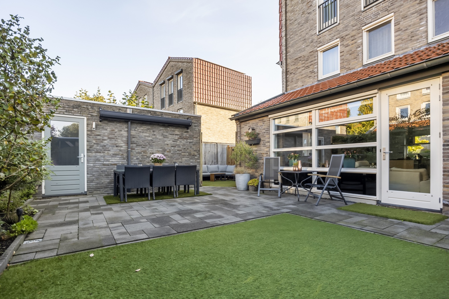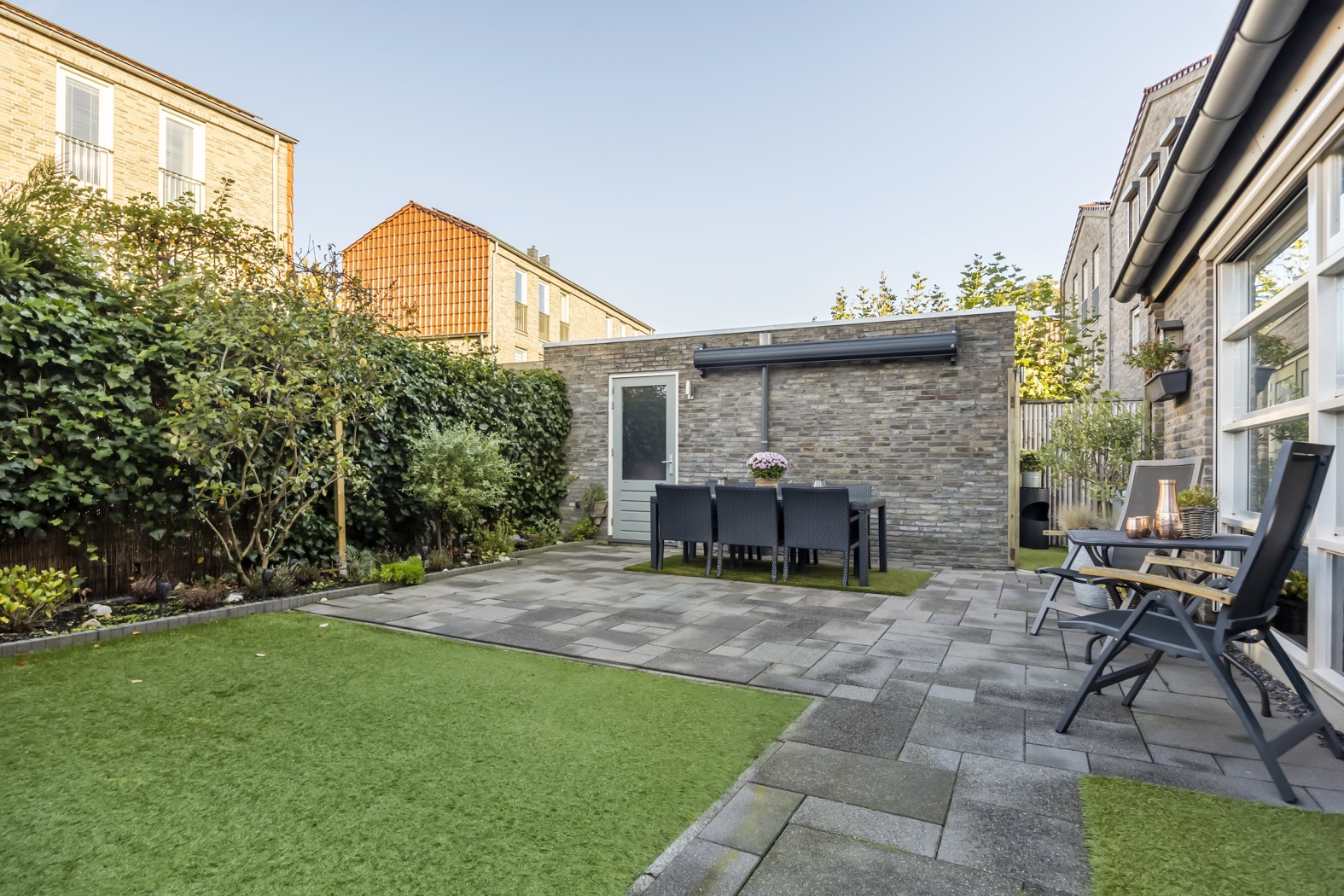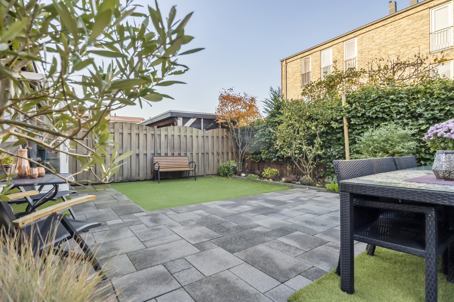 - Achtertuin op het westen, 87 m² groot, met achterom