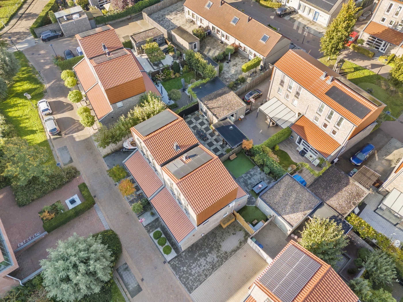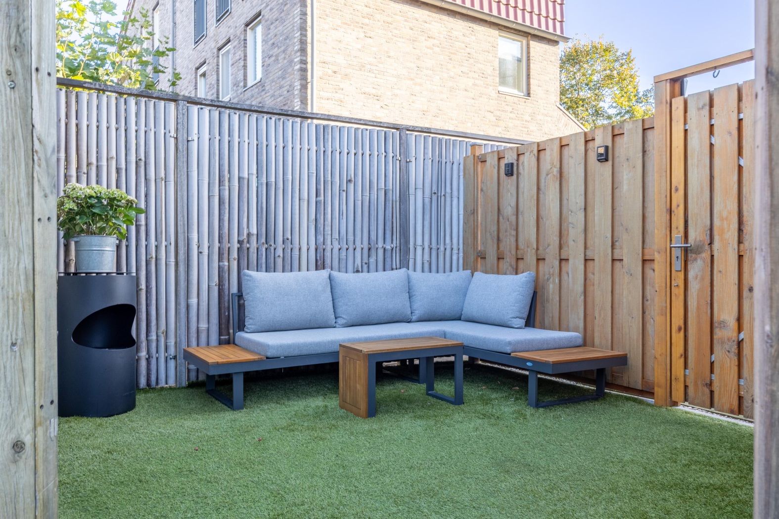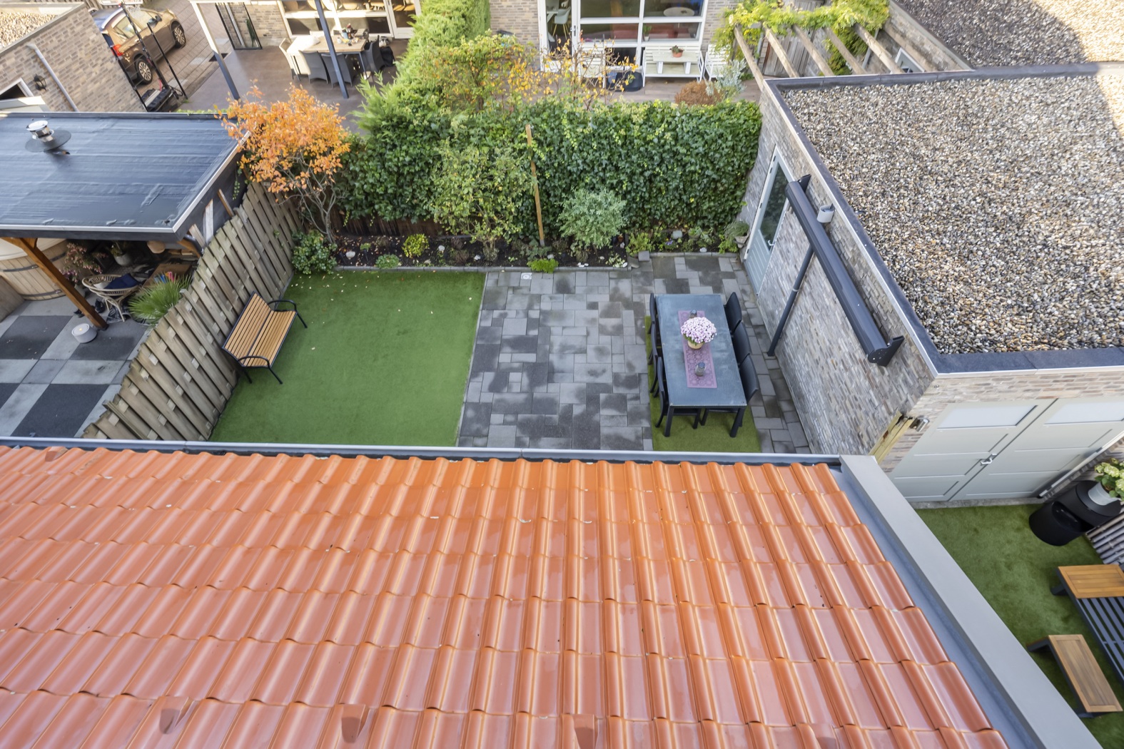 - Achtertuin op het westen, 87 m² groot, met achterom