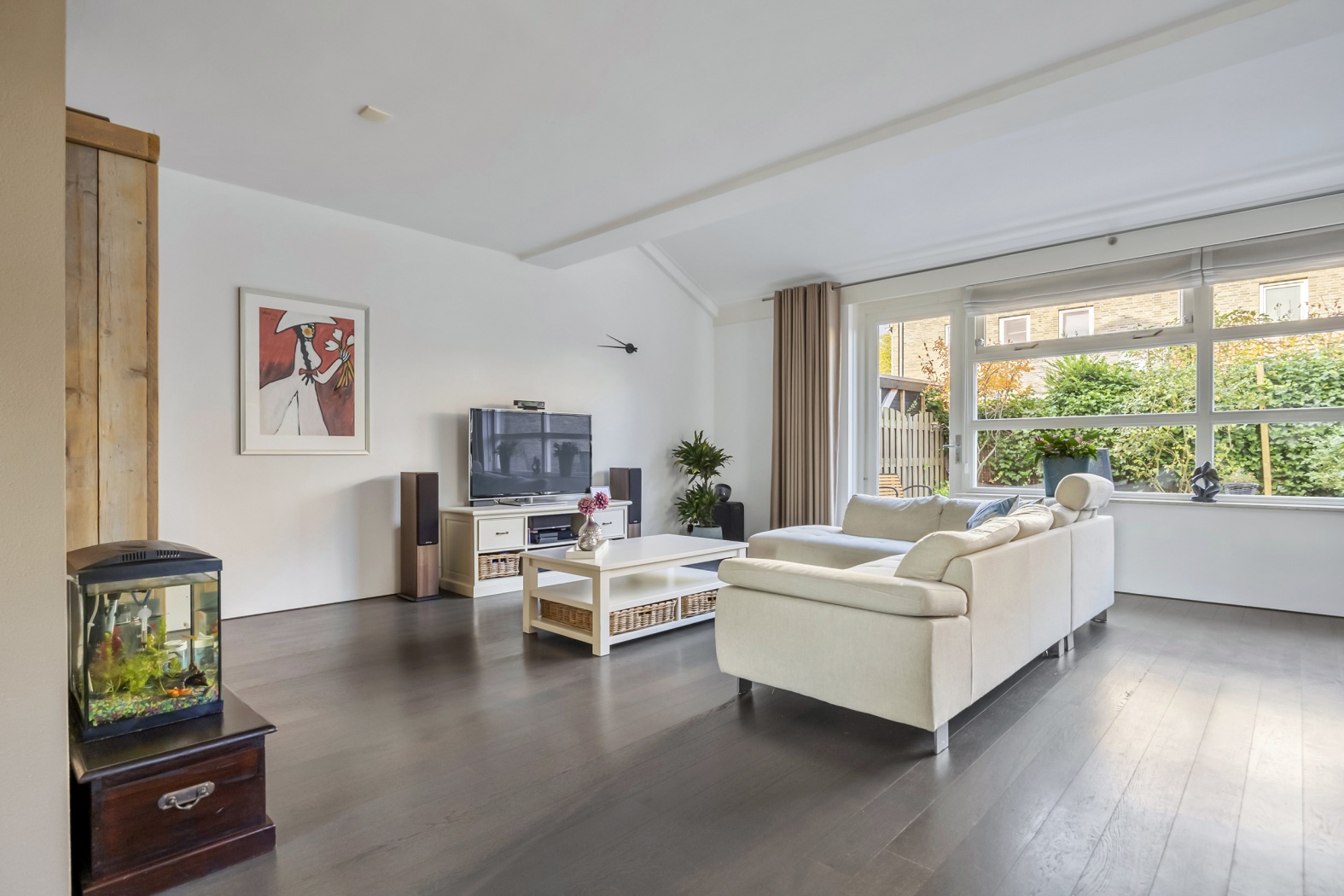 De achtertuin ligt op het westen, waardoor je ’s middags en ’s avonds heerlijk van de zon kunt genieten. Met een oppervlakte van 87 m² is er volop ruimte voor een loungehoek, eettafel en speelplek. De vaste luifel zorgt voor een beschutte plek, ideaal voor lange zomeravonden of om op warme dagen de schaduw op te zoeken. Dankzij de achterom is de tuin ook praktisch in gebruik, en via de tuin bereik je de garage. De verzorgde tuin maakt het geheel compleet: een fijne plek om tot rust te komen en te genieten van buitenleven.