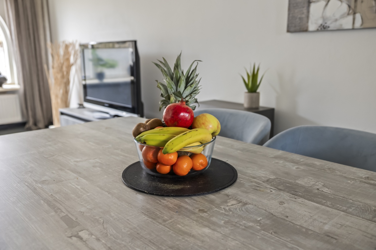 De open keuken sluit naadloos aan op de woonkamer en is van alle gemakken voorzien. Hier kook je in verbinding met het woongedeelte, wat zorgt voor een open en uitnodigende sfeer.