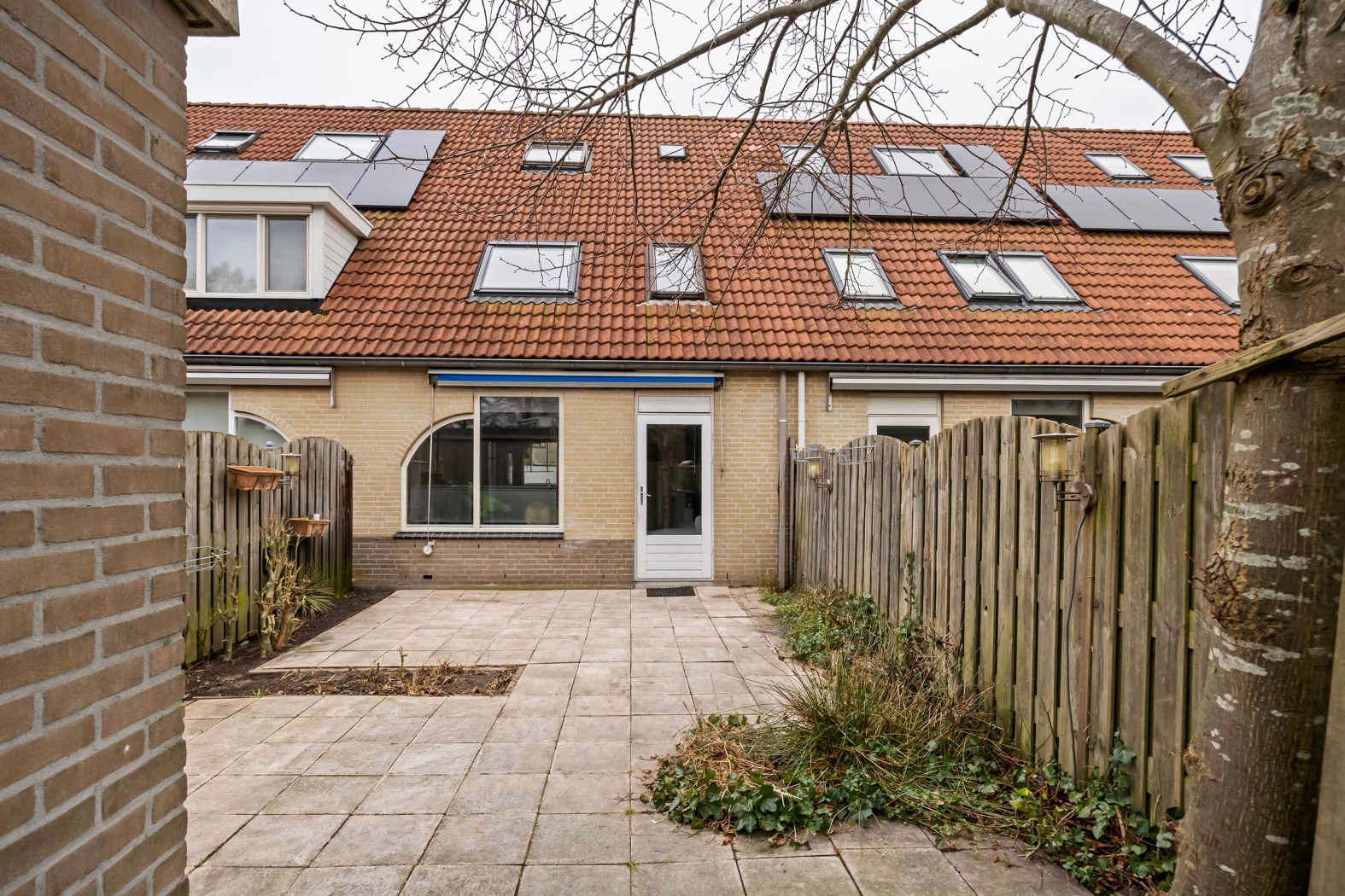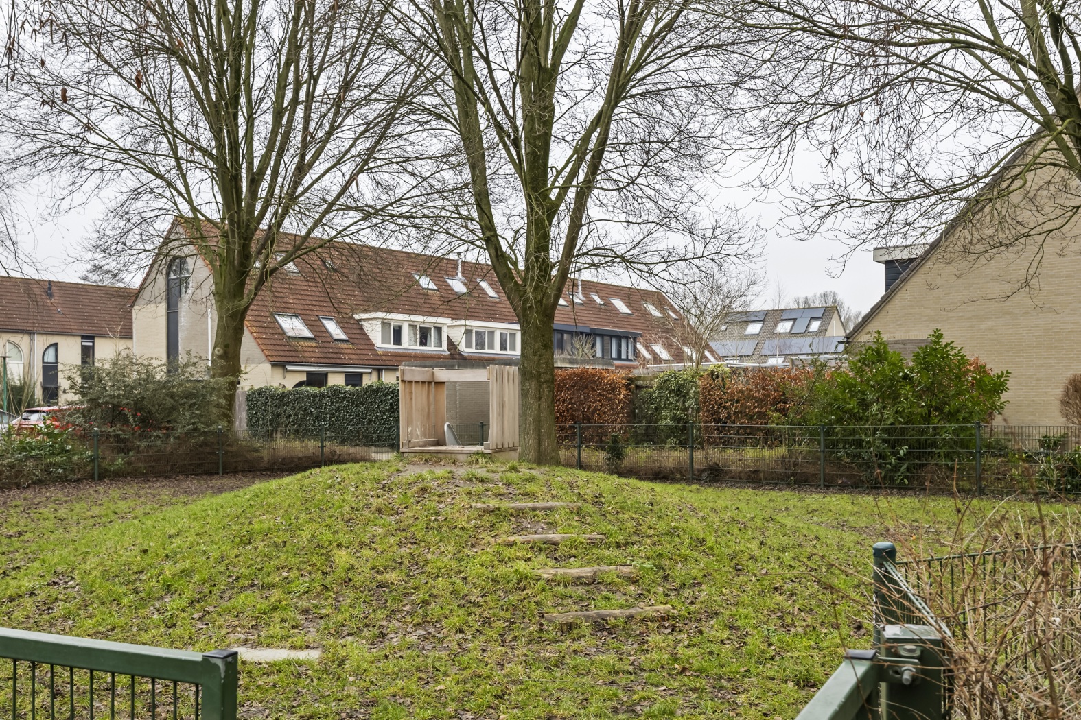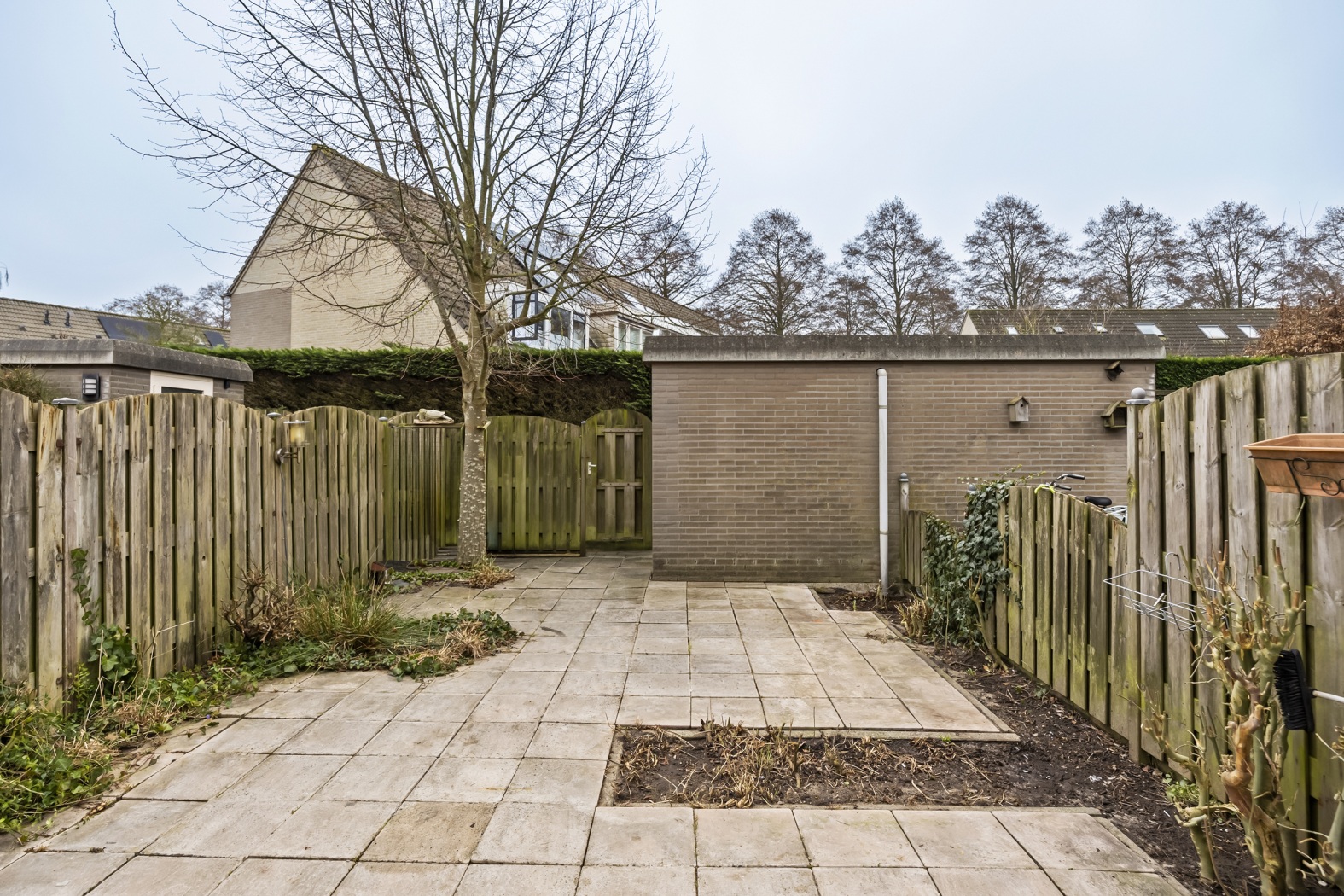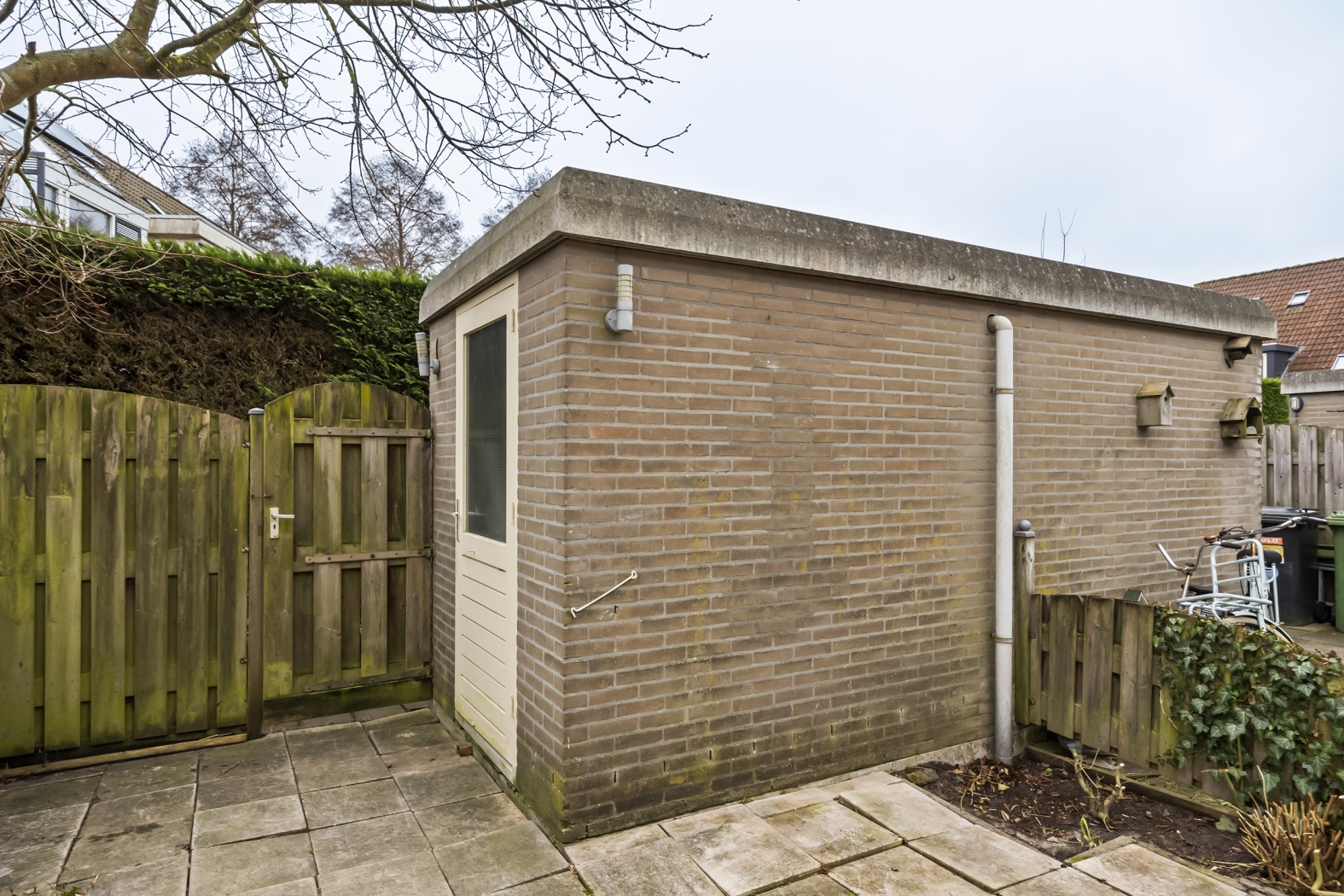 Via de achterdeur bereik je de diepe achtertuin. Deze biedt meer dan voldoende ruimte voor het creëren van een fijne loungeplek, een eethoek of een speelruimte voor kinderen. Achterin de tuin bevindt zich een stenen berging, ideaal voor het stallen van fietsen en het opbergen van tuinspullen.