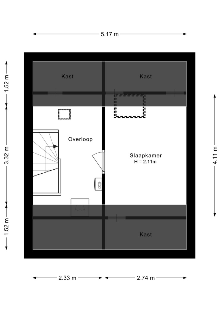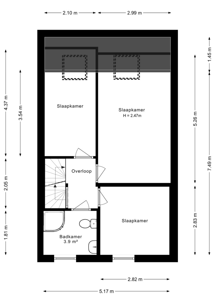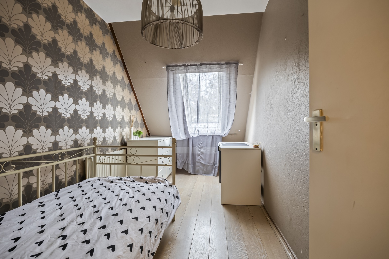 De tweede verdieping biedt nog meer mogelijkheden. Hier bevindt zich een extra slaapkamer, aanvullende opbergruimte én de opstelplaats voor de wasmachine. Deze verdieping maakt de woning extra geschikt voor grotere gezinnen of voor wie behoefte heeft aan een aparte werkruimte.