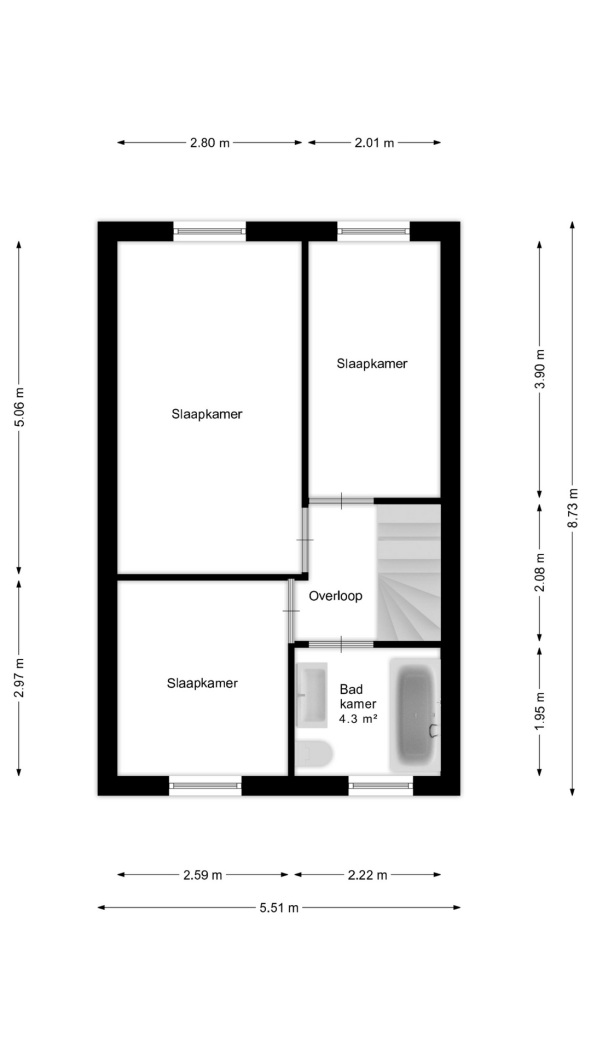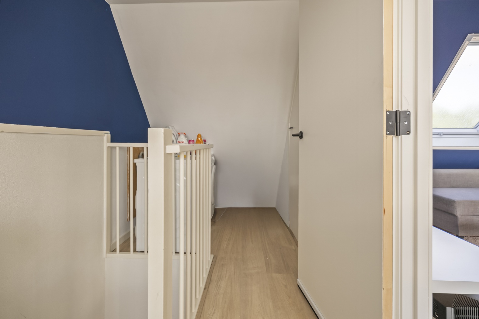 Op de eerste verdieping bevinden zich drie slaapkamers en een badkamer. De tweede verdieping biedt dankzij de dakkapel aan de achterzijde extra ruimte: hier is een ruime slaapkamer en een voorzolder waar de wasmachine kan worden geplaatst.