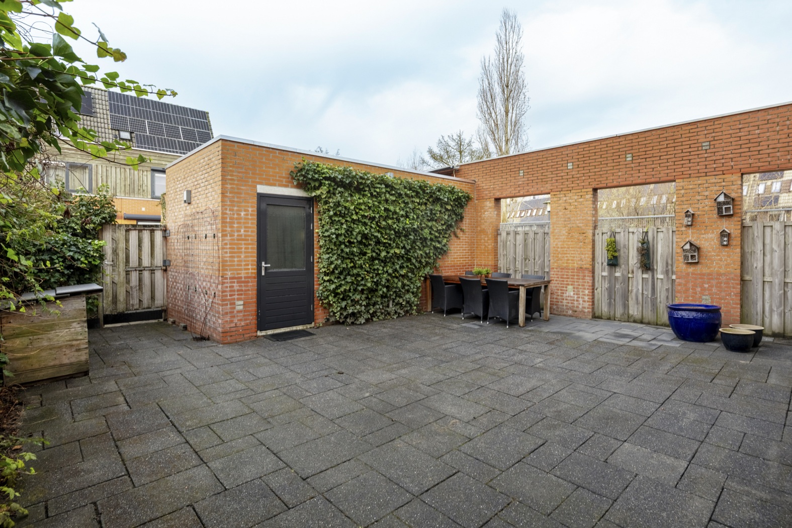 De achtertuin is een fijne plek om te ontspannen en biedt voldoende ruimte voor een zit- en eethoek. Achterin de tuin bevindt zich de vrijstaande, dubbelwandige, geïsoleerde garage. Die zorgt voor volop bergruimte en/of een veilige plek voor de auto. Dit maakt het geheel bijzonder compleet en comfortabel.