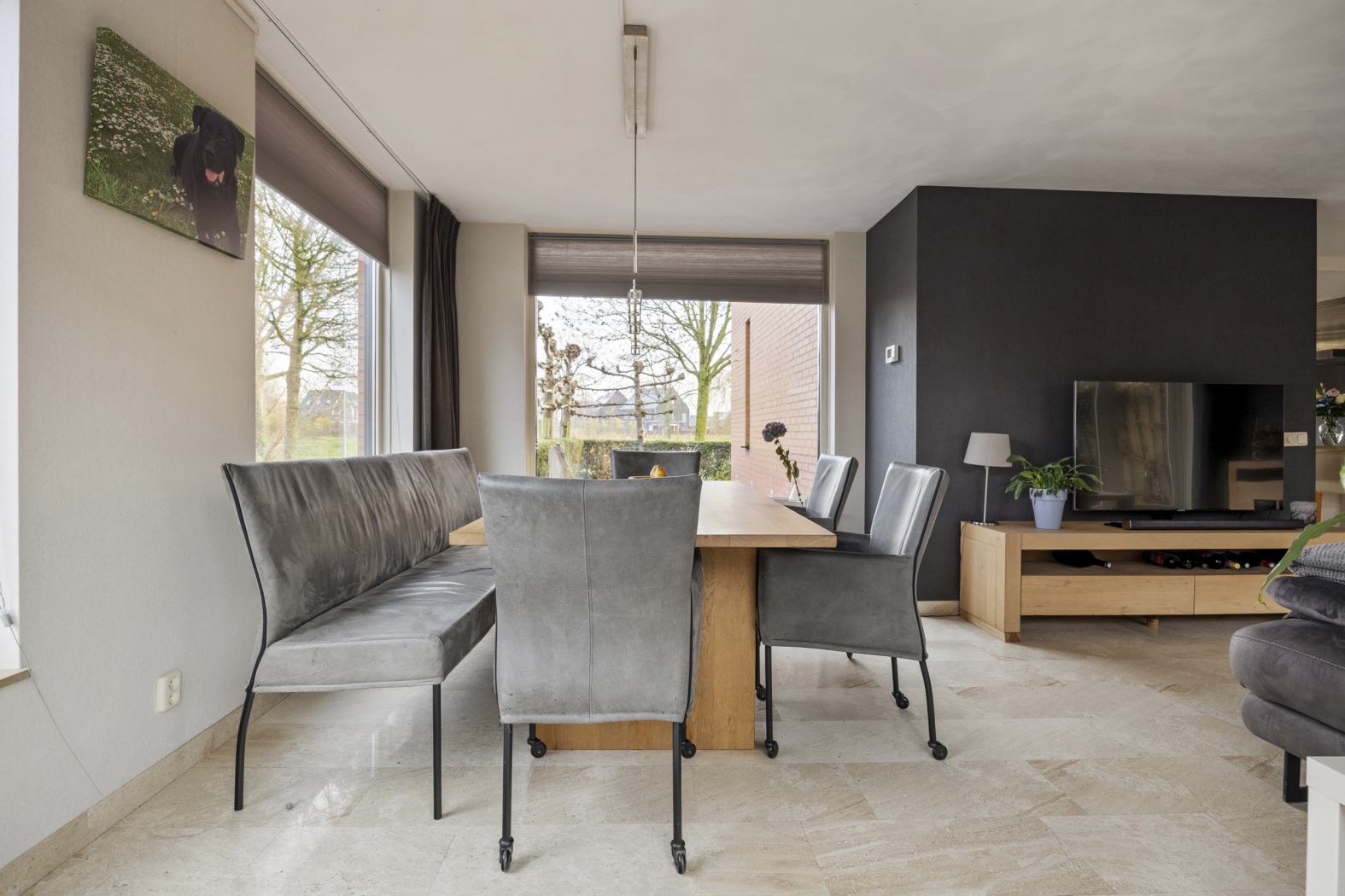 De open keuken sluit naadloos aan op de woonkamer en is modern en praktisch ingericht. Met voldoende werkruimte en veel kastruimte, moderne inbouwapparatuur en een Grohe-kokendwaterkraan is dit een keuken waar dagelijks comfort en kookplezier samenkomen. Of je nu uitgebreid kookt of snel iets op tafel zet, hier kan het allemaal. Dankzij de open opzet blijf je altijd in contact met het gezin of je gasten. Zowel de woonkamer als de keuken zijn voorzien van screens; dit biedt privacy zonder dat je het uitzicht verliest.