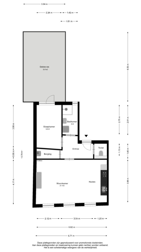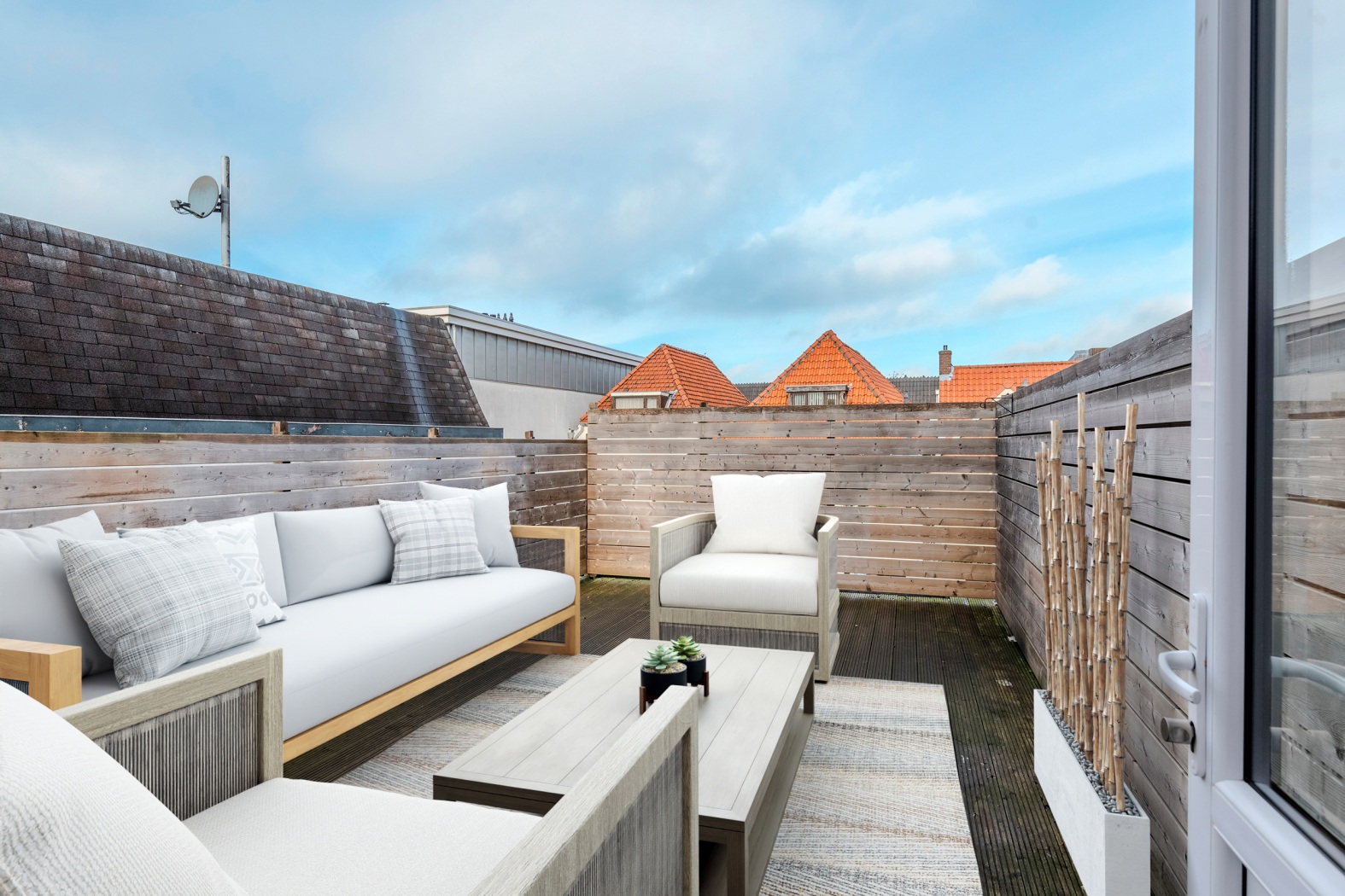 De woonkamer is een heerlijke plek om te ontspannen, te koken en te eten. Vanuit de slaapkamer stap je zo het royale dakterras van maar liefst 26 m² op. Echt waar: je eigen zonnige mini-oase midden in de stad. Perfect voor een kop koffie, een goed glas wijn, of gewoon even helemaal niets.