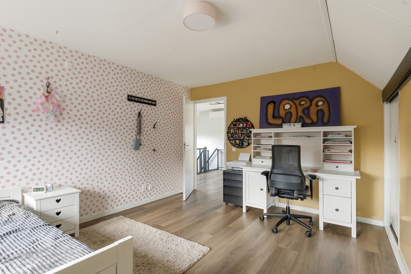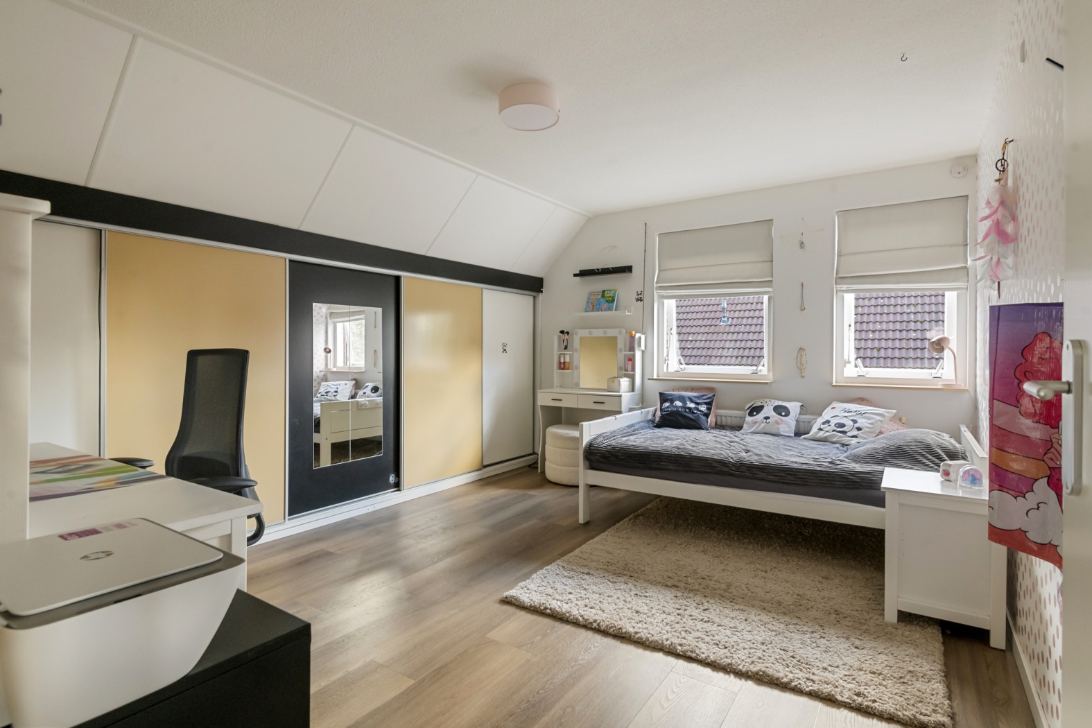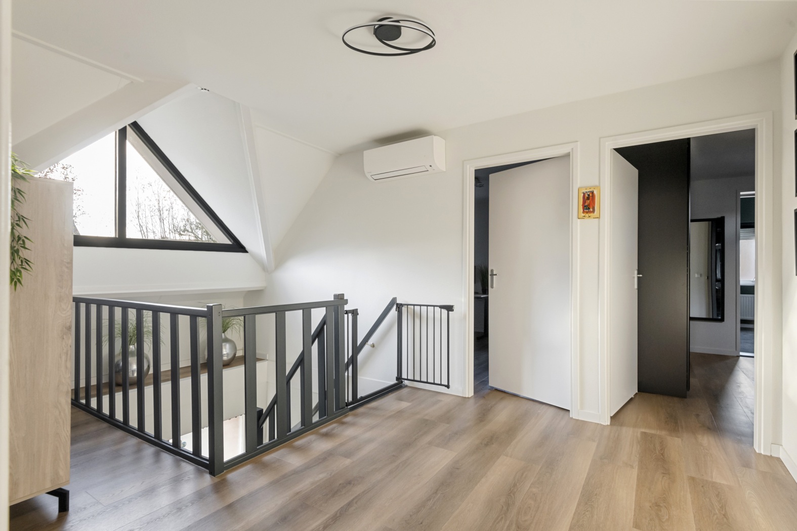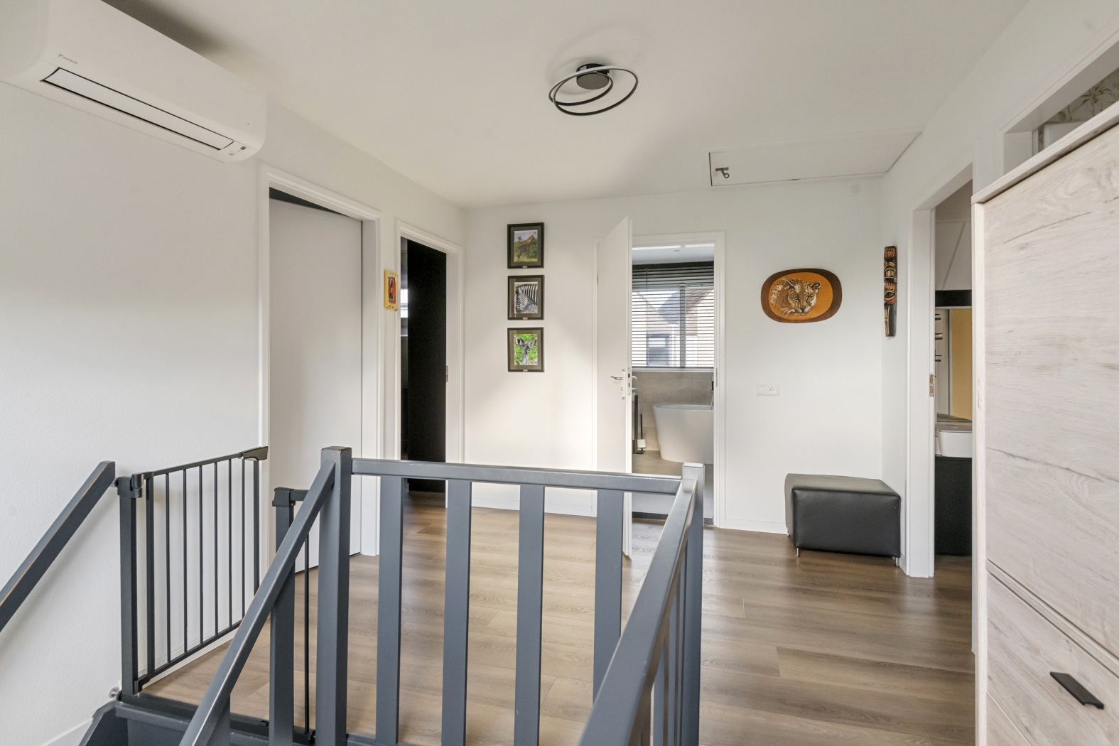 De overloop vormt een prachtige, ruime verkeersruimte met een open vide die het huis een heerlijk luchtig en licht karakter geeft. Vanuit hier heb je toegang tot maar liefst vier slaapkamers en de badkamer.