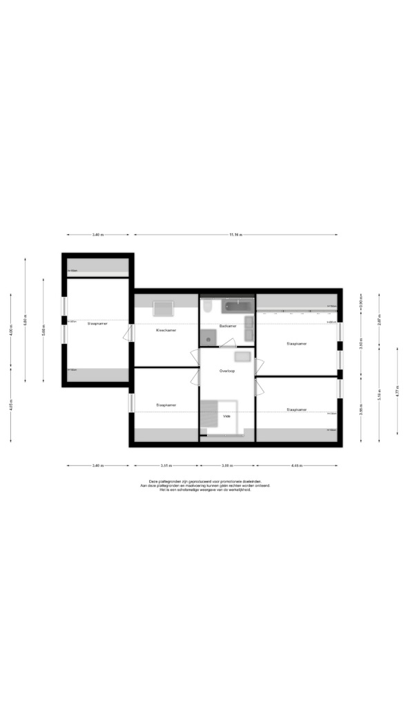 4 slaapkamers + kleedkamer