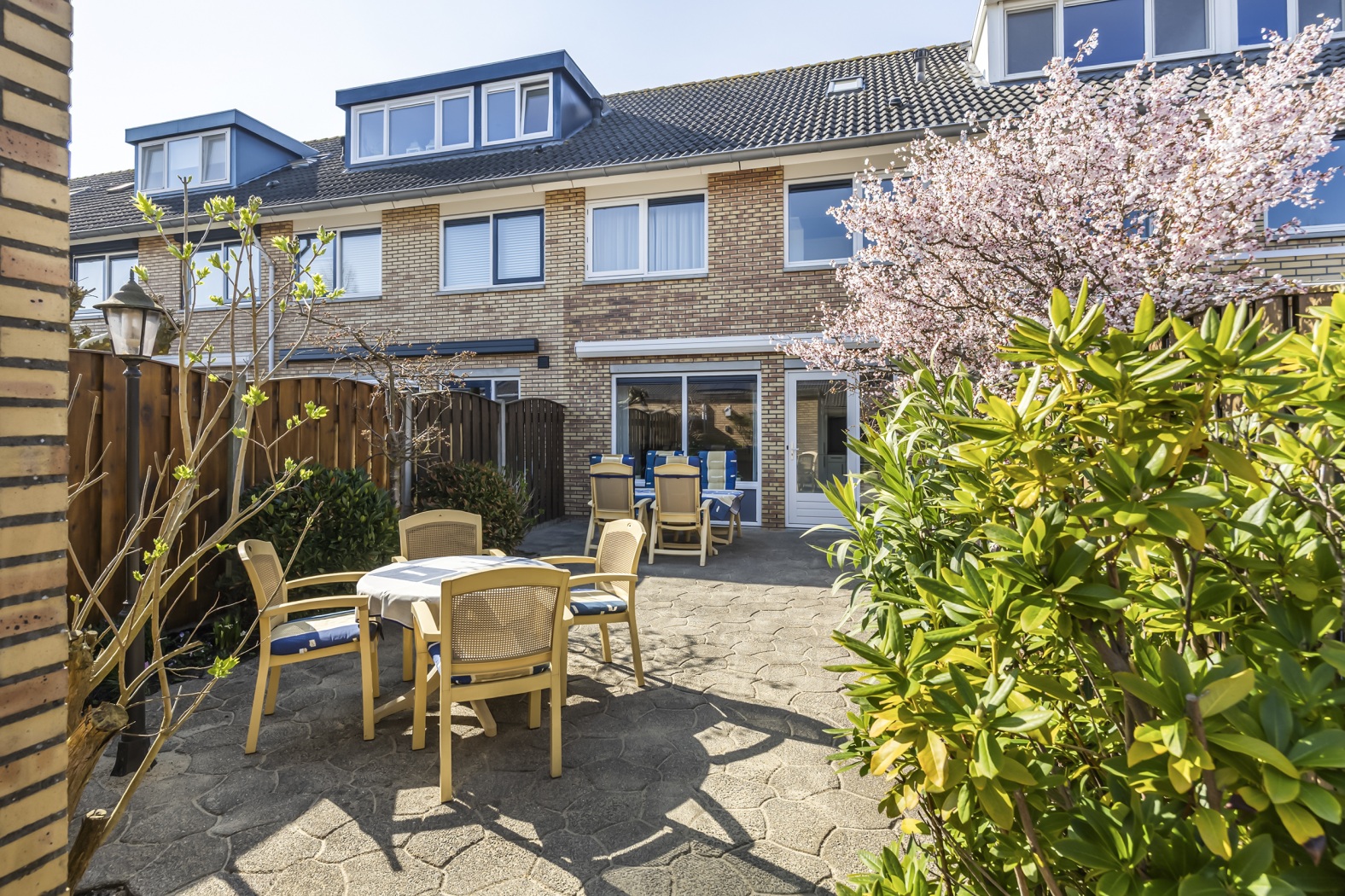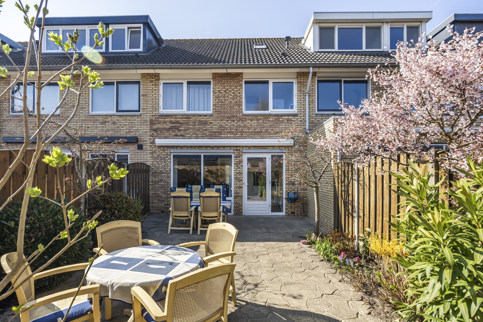 * Ruime achtertuin op het oosten met berging en achterom