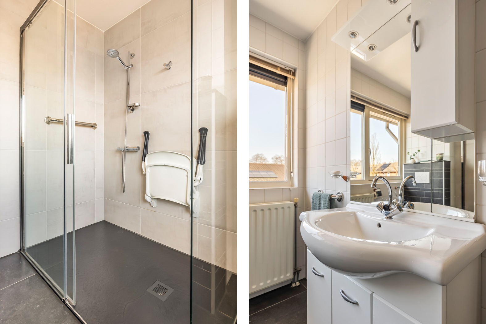 * Ruim opgezette badkamer met extra toilet