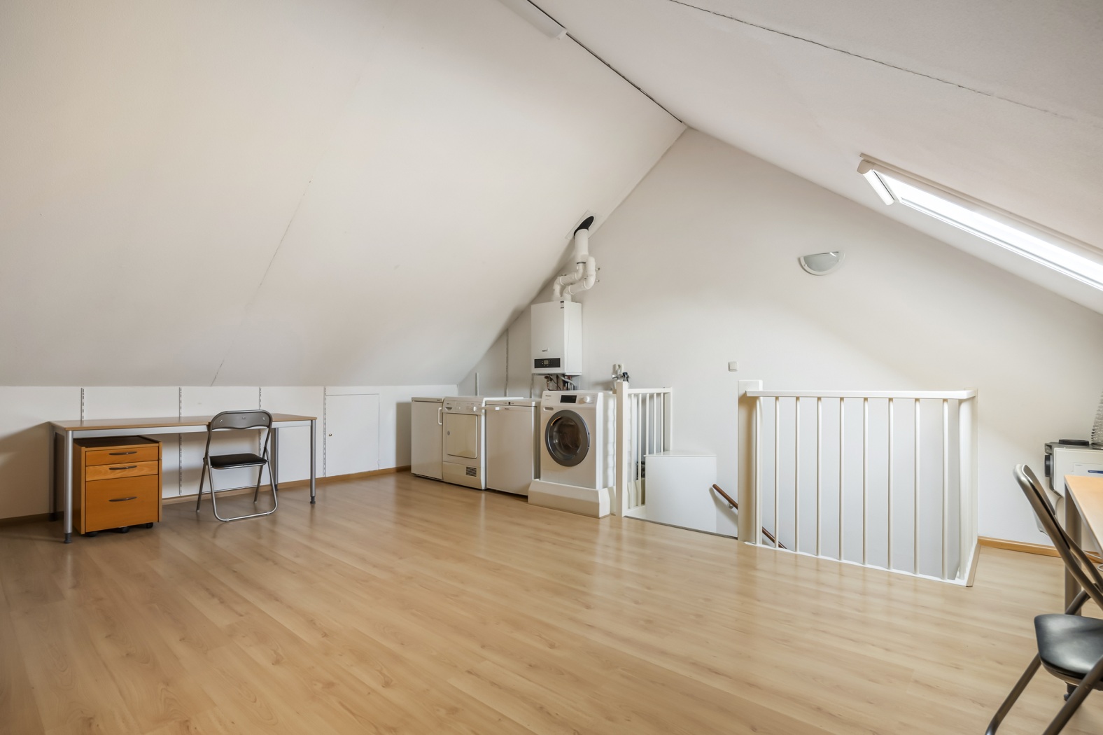 * Ruime zolderverdieping met aansluitingen voor de wasmachine en droger