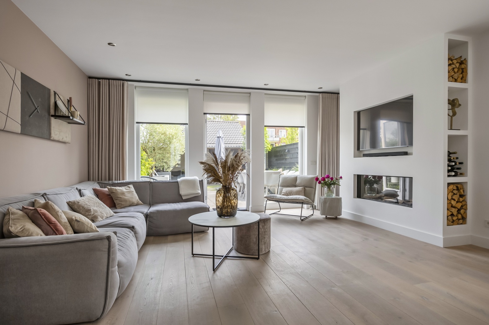 •Riante living van 42 m² met cinewall, gashaard en verlaagde plafonds met spots