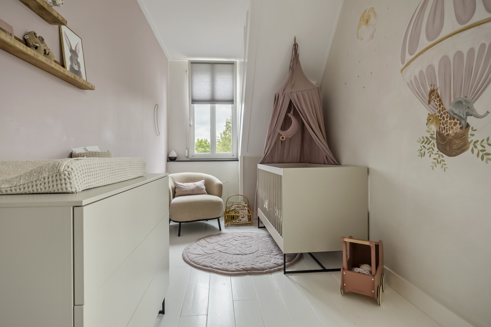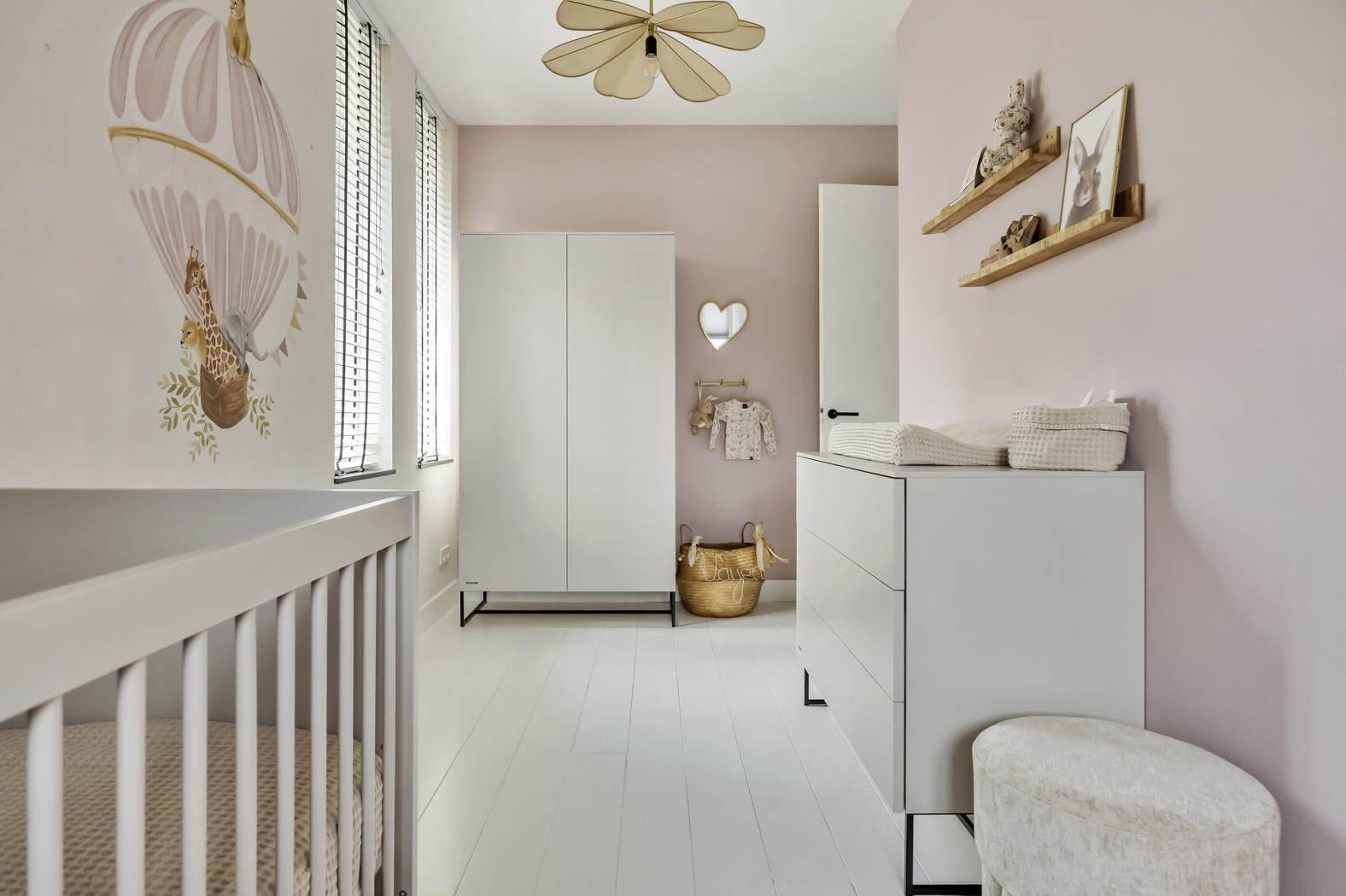 Op de verdieping vind je drie ruime slaapkamers. De master bedroom (voorzijde) met extra zijraam heeft een inbouwkast (2021) en airco (2024). Aan de achterzijde liggen een gezellige babykamer met muurschildering, dakkapel en zijramen, en een kantoor/slaapkamer met dakkapel en airco (2023). Alle kamers (m.u.v. de badkamer) hebben rolluiken, inzethorren en in 2024 fris witgelakte vloeren.
