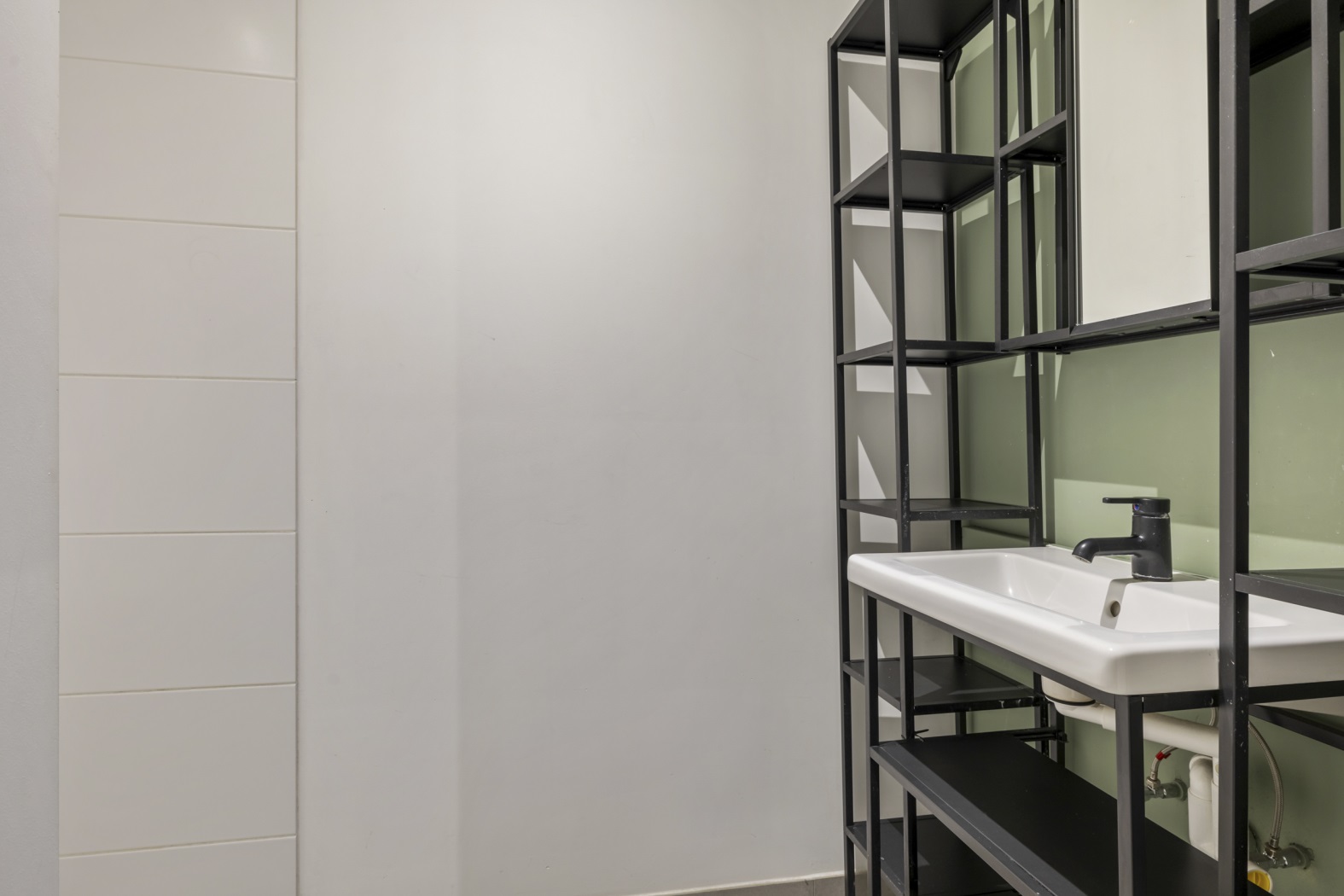 Verder beschikt de woning over een slaapkamer, een moderne badkamer met inloopdouche, wastafel en een aparte toiletruimte. De gehele woning is voorzien van dubbele beglazing en wordt verwarmd middels elektrische verwarming. Warm water wordt geleverd door een elektrische boiler.