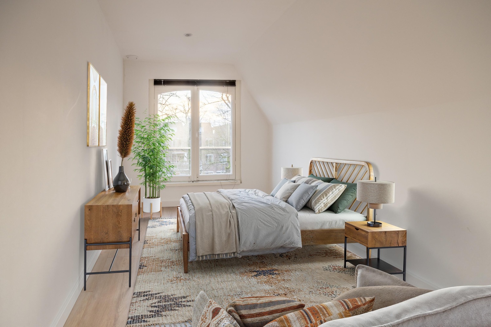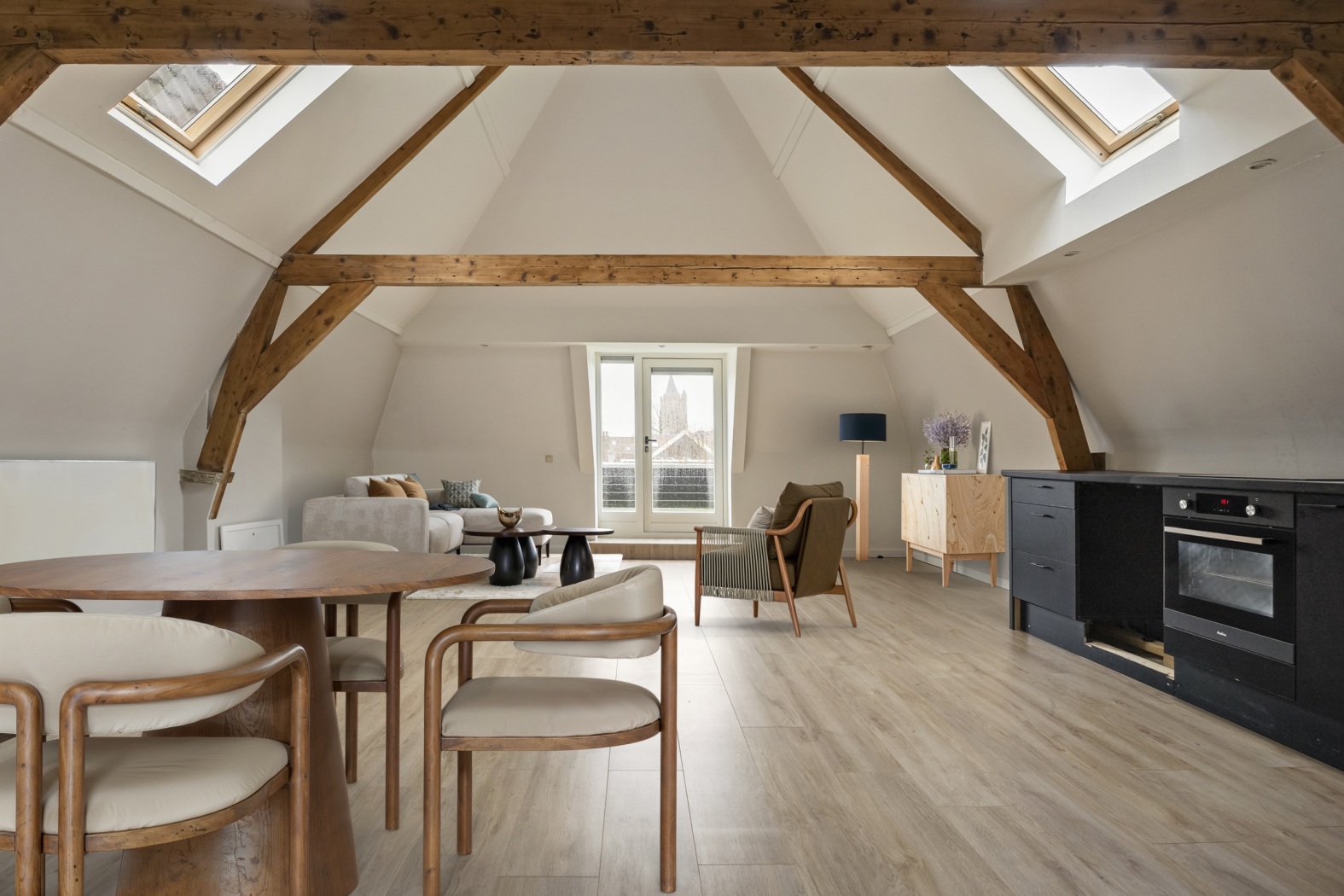 Gelegen in een charmant pand, is dit unieke appartement in 2021 volledig gerenoveerd en biedt het alles voor een comfortabele en eigentijdse woonbeleving. De woning is een echte eyecatcher door de houten balken en het hoge puntdak, wat zorgt voor een ruimtelijk en karakteristiek gevoel.