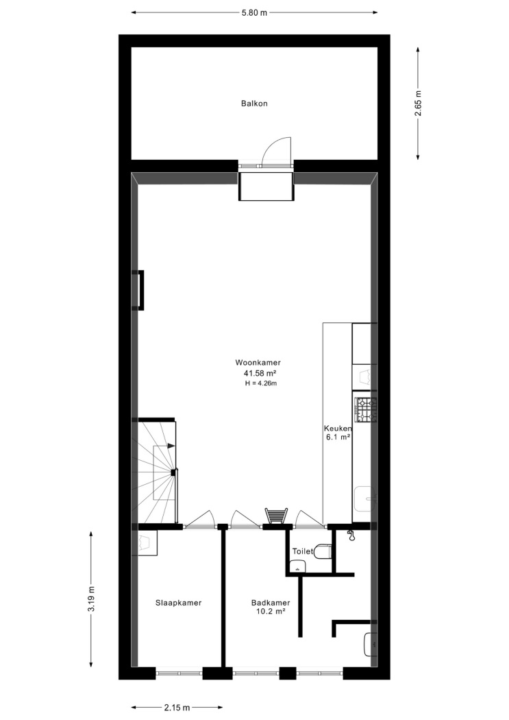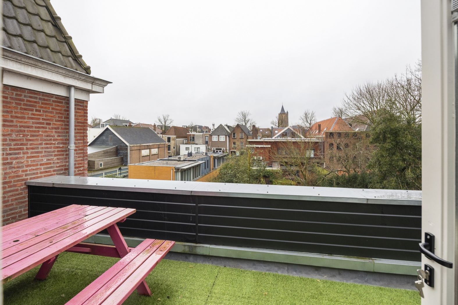 Vanuit de woonkamer betreed je het balkon, wat een extra dimensie geeft aan het appartement, perfect voor een moment van rust of een gezellige tijd buiten.