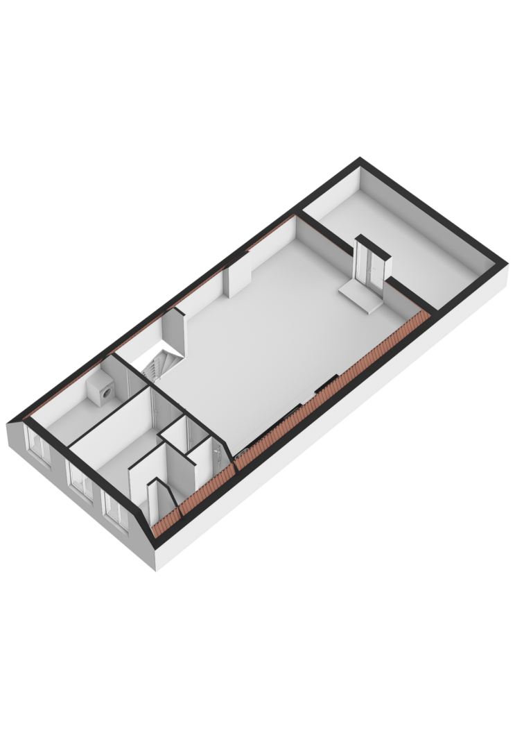 De open woonkamer met een moderne keuken biedt veel lichtinval en ruimte om een fijne leefomgeving te creëren. Een bijzonder detail is de vide die je via een trap vanuit de woonkamer kunt bereiken. Deze extra ruimte is ideaal voor een slaapruimte, kantoor of hobbyruimte.