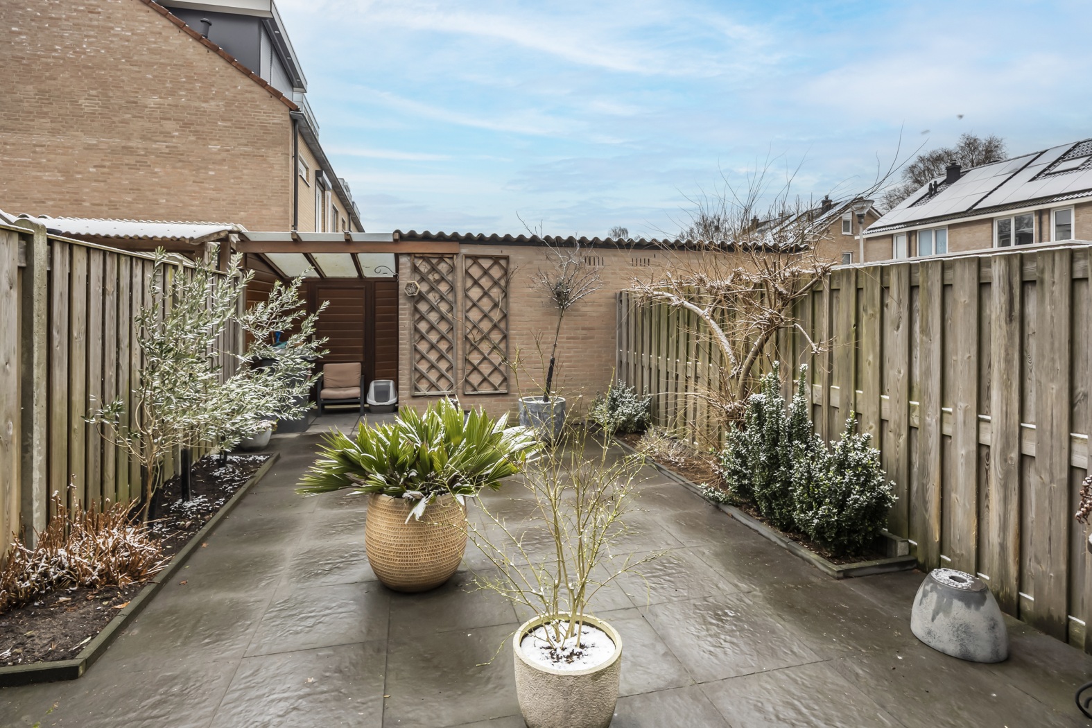 De open keuken sluit naadloos aan op de woonkamer en is van alle gemakken voorzien. Koken, eten en samenzijn lopen hier moeiteloos in elkaar over. Vanuit de woonkamer heb je toegang tot de diepe achtertuin: een echte plus! Of je nu wilt ontspannen, tuinieren of gezellig buiten wilt eten, hier is ruimte genoeg om het helemaal naar eigen wens in te richten. Achterin de tuin bevind zich een stenen berging, handig voor het opbergen van tuinspullen en het stallen van fietsen. Naast de berging is een overkapping gemaakt waar je heel het jaar door kunt relaxen.