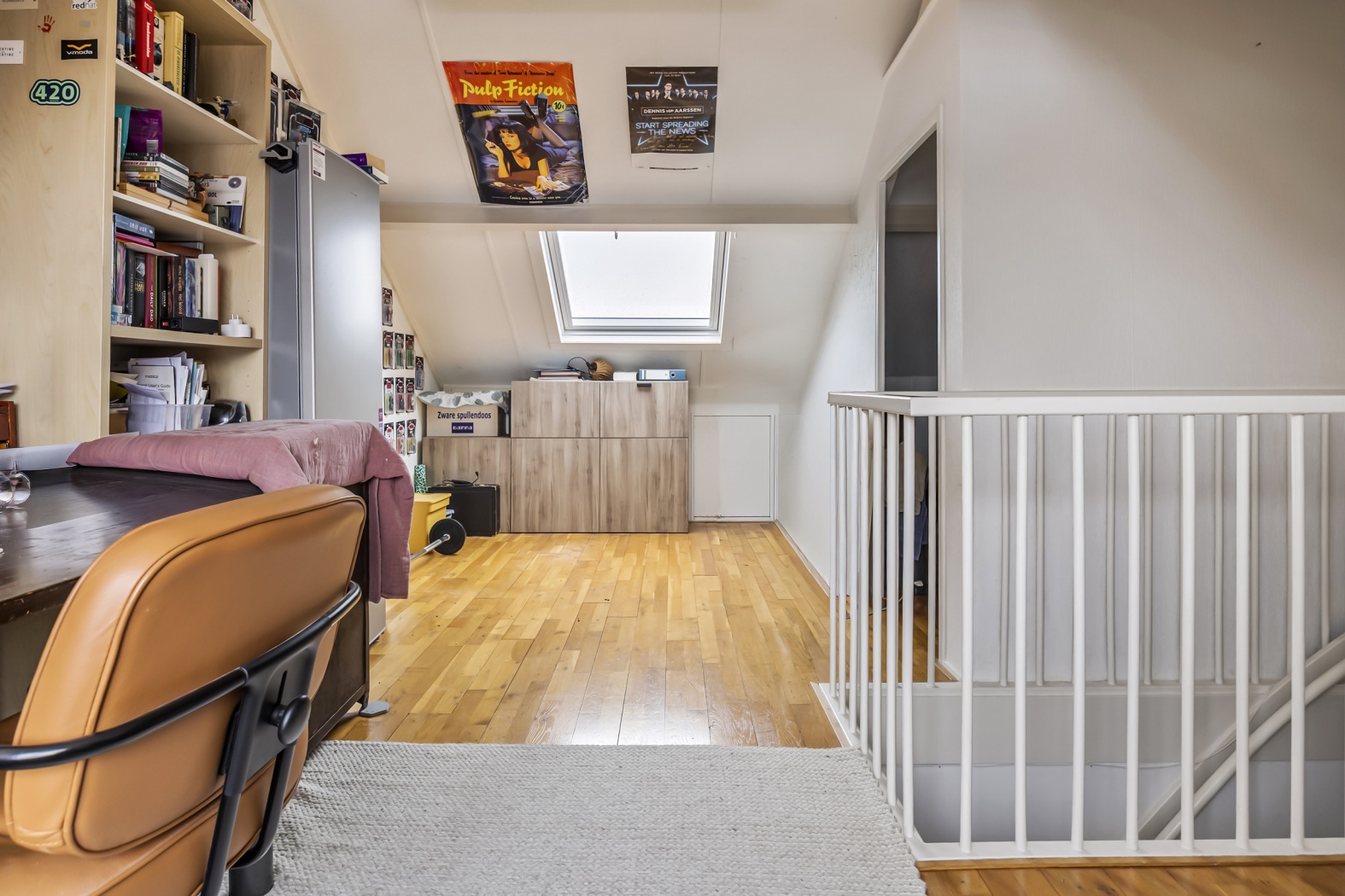De zolderverdieping, met dakkapel en airconditioning, biedt volop mogelijkheden. Ideaal als extra bergruimte, maar ook zeer geschikt voor het creëren van een extra slaapkamer, werk- of hobbyruimte. Het houten kozijn van het dakraam op zolder us geplaatst in 2022, de dakkapel heeft kunststof kozijnen, wat bijdraagt aan de verzorgde uitstraling van de woning.