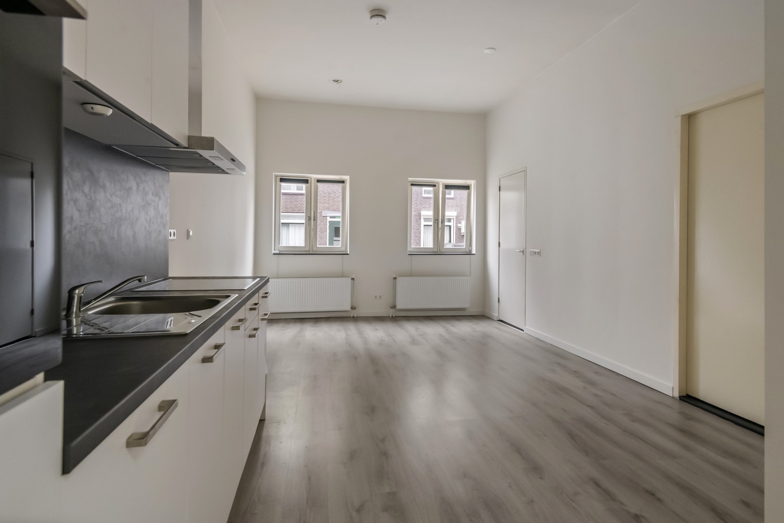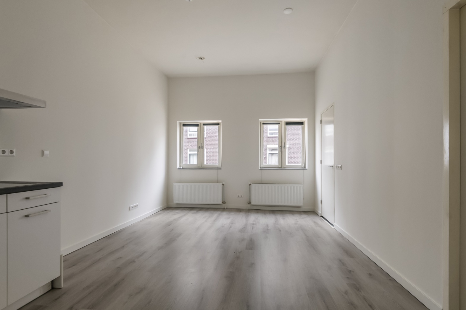 De woonkamer met open keuken (ca. 23 m²) is een heerlijke, lichte ruimte dankzij de twee draai-kiepramen aan de voorzijde. Met een plafondhoogte van maar liefst 3,20 meter voelt het hier bijna alsof je in een mini-loft woont—maar dan zonder het bijbehorende prijskaartje. De laminaatvloer maakt het geheel strak en onderhoudsvriendelijk.