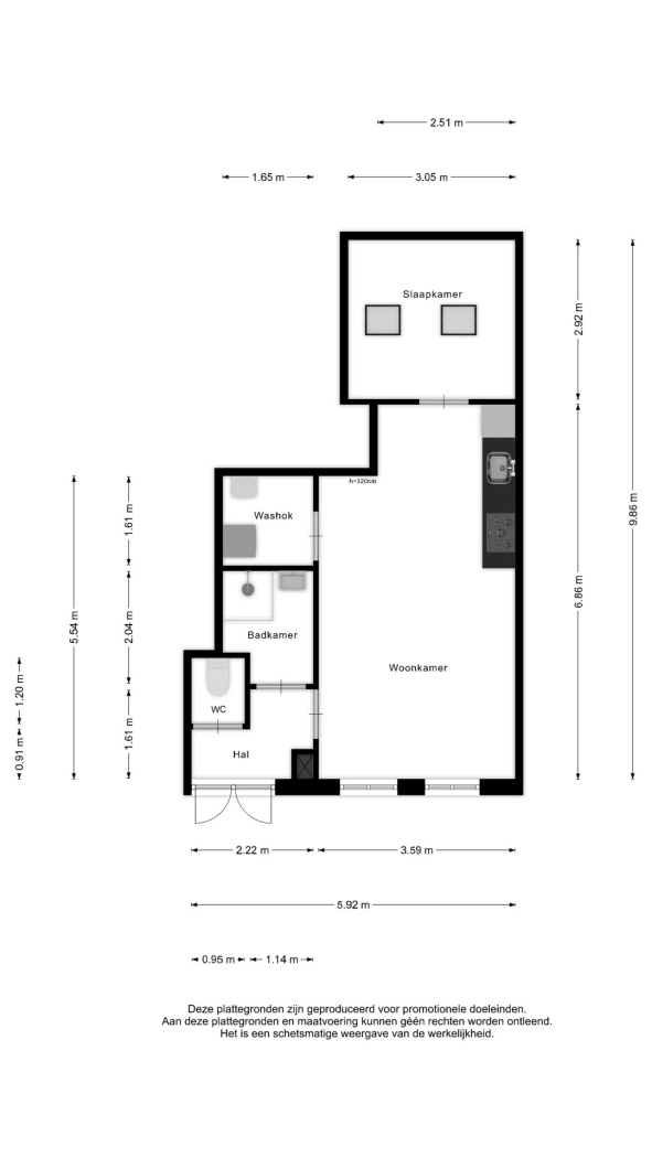 Je komt binnen via de hal met toilet en frisse badkamer, stapt door naar een fijne woonkamer met praktische draai-kiepramen, een moderne keuken met apparatuur voor al je kookkunsten (of je pogingen daartoe), een aparte wasruimte en een slaapkamer met twee elektrische daklichten mét zonwering. Zo word je dus nooit per ongeluk door de zon gewekt—tenzij je dat wil.