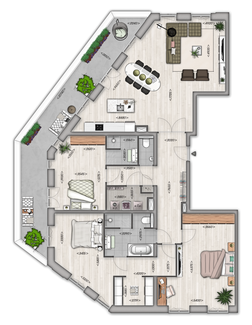 Met een woonoppervlakte van maar liefst 176 m² en een riant balkon van 33 m² op het noorden en noordwesten, biedt dit appartement op de vierde verdieping een unieke woonbeleving. De ruime woonkamer van 54 m² heeft openslaande deuren naar het balkon, waardoor binnen en buiten naadloos in elkaar overlopen. Perfect voor lange zomeravonden of een rustige ochtendkoffie met uitzicht.