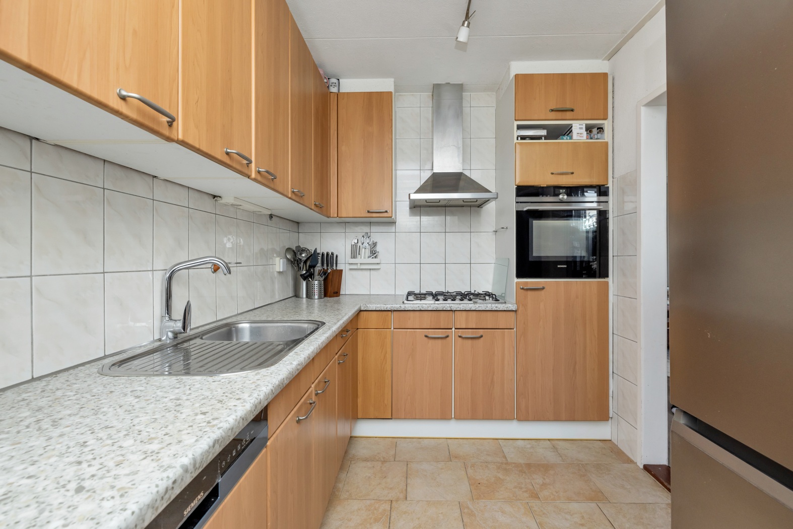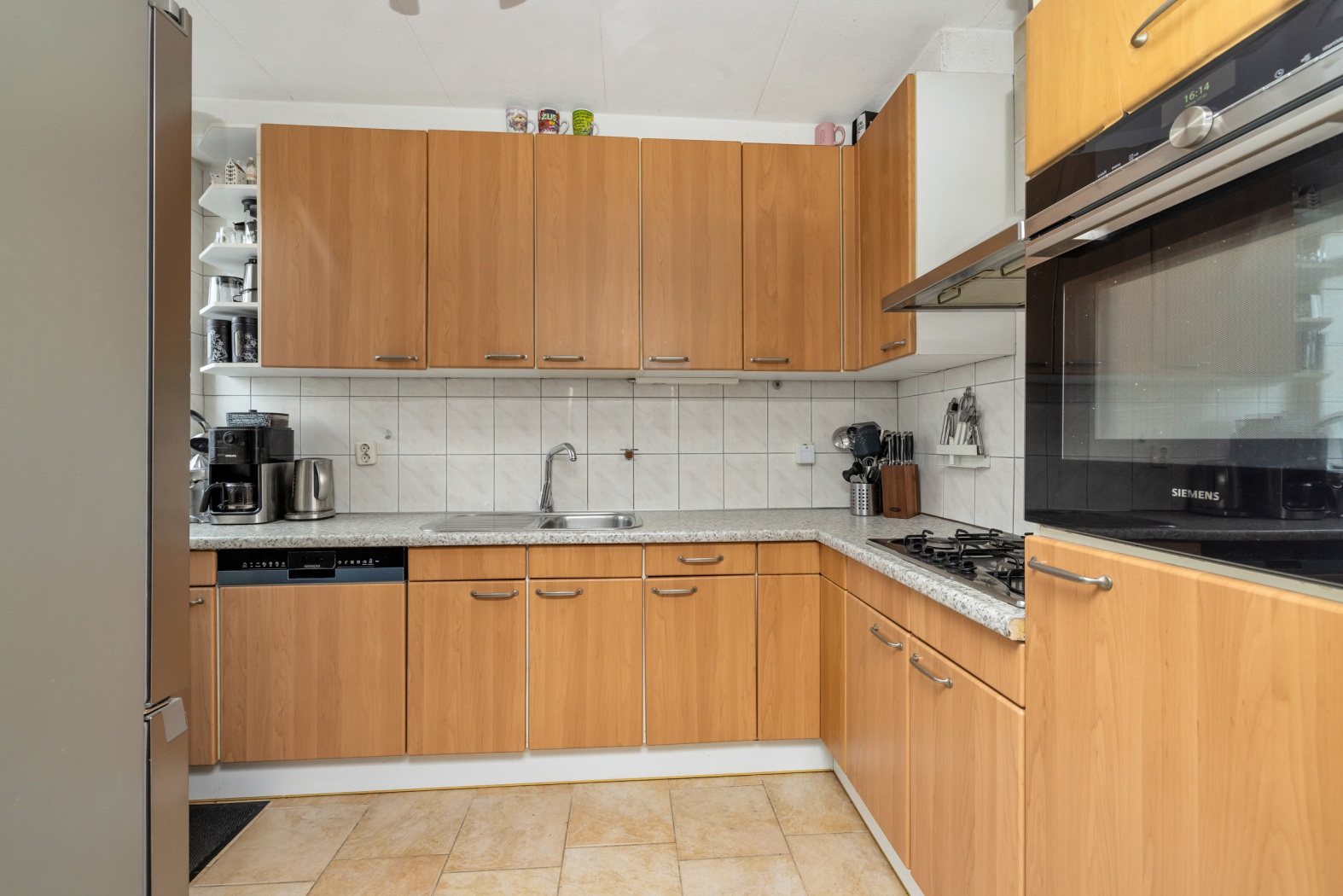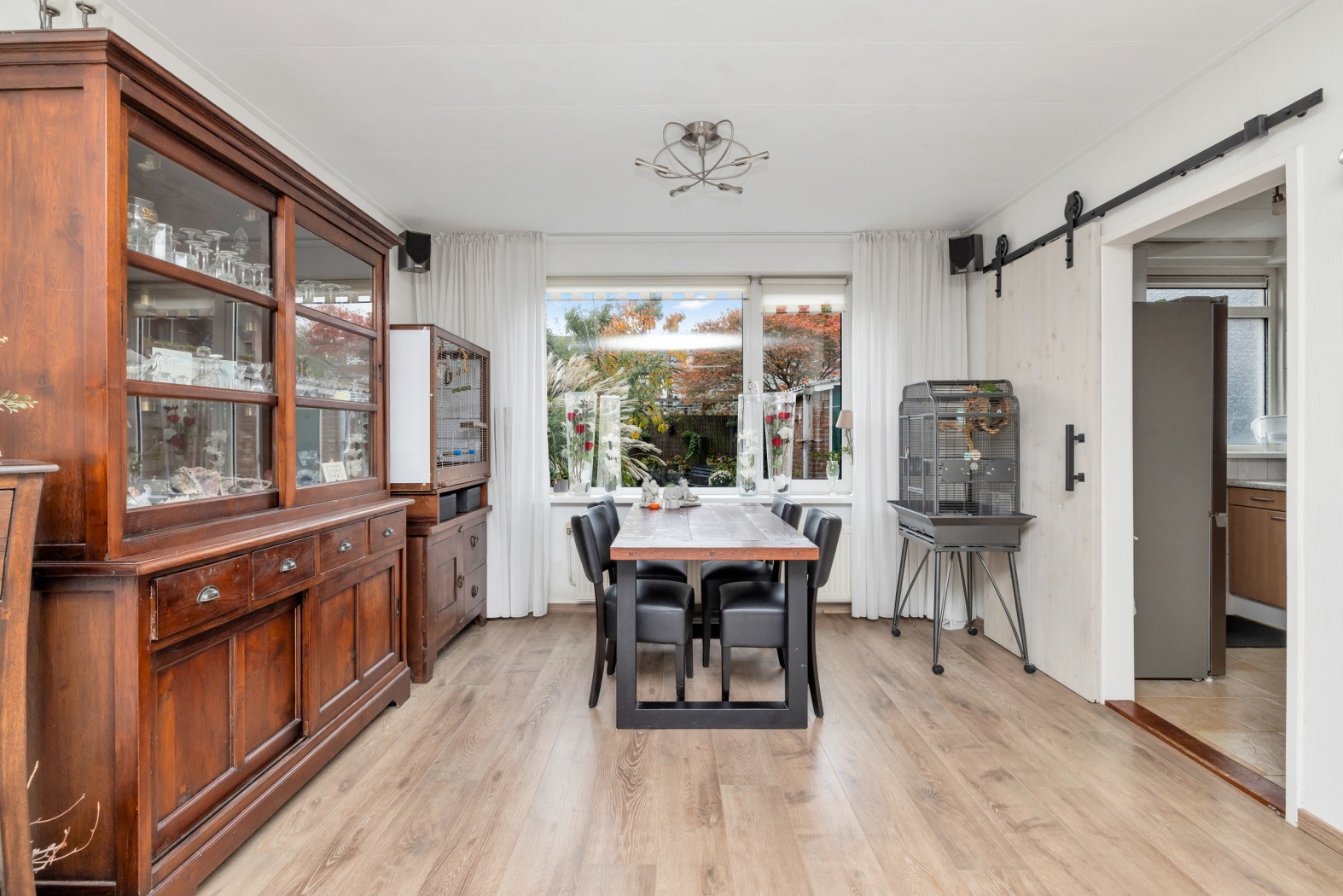 De lichte doorzon woonkamer heeft grote ramen en kijkt prettig uit op de tuin. Via een stoere schuifdeur aan een railsysteem bereik je de hoekkeuken, die is voorzien van inbouwapparatuur. Daarnaast is de woning uitgerust met rolluiken, airconditioning en een groot zonnescherm voor extra comfort.