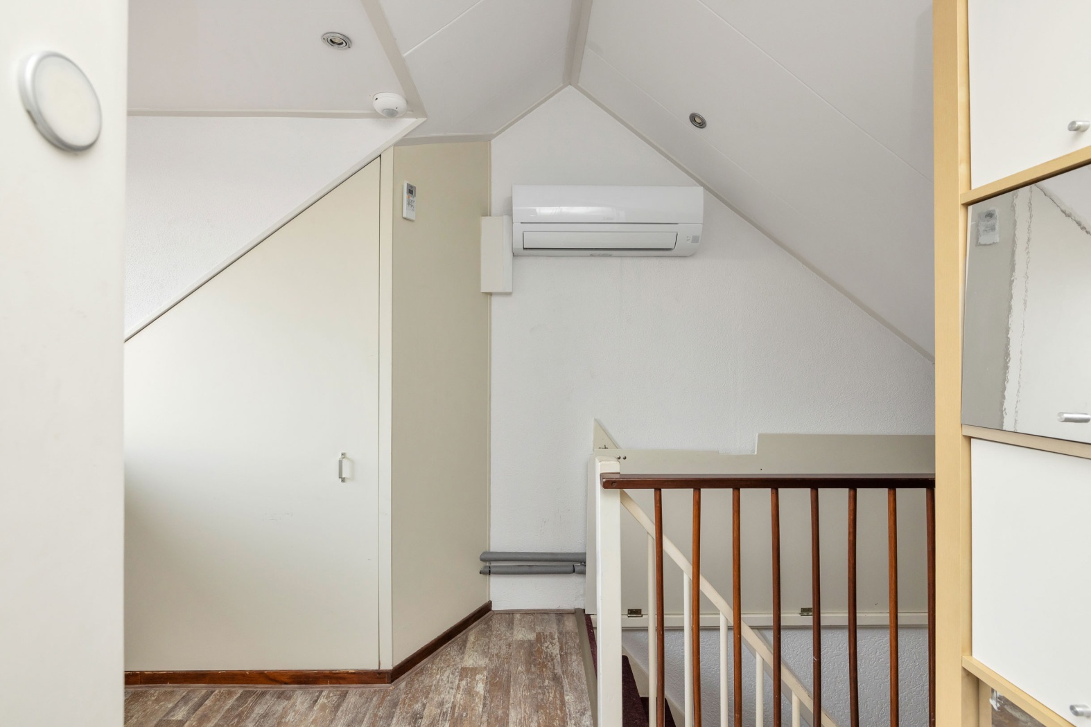 Overloop met airconditioning, extra bergruimte, cv-opstelling en aansluitingen voor de wasmachine en droger. Via de overloop zijn twee fraai afgewerkte slaapkamers bereikbaar, beide voorzien van een dakkapel aan de voor- en achterzijde.