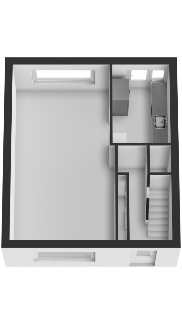 De lichte doorzon woonkamer heeft zowel aan de voor- als achterzijde grote ramen, waardoor er een fijne zithoek aan de voorzijde en een comfortabele eethoek aan de achterzijde ontstaat. De ruimte is afgewerkt met een laminaatvloer. Vanuit de woonkamer bereik je via een stoere loft–schuifdeur op railsysteem de keuken.