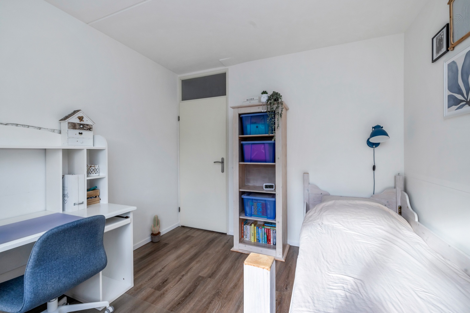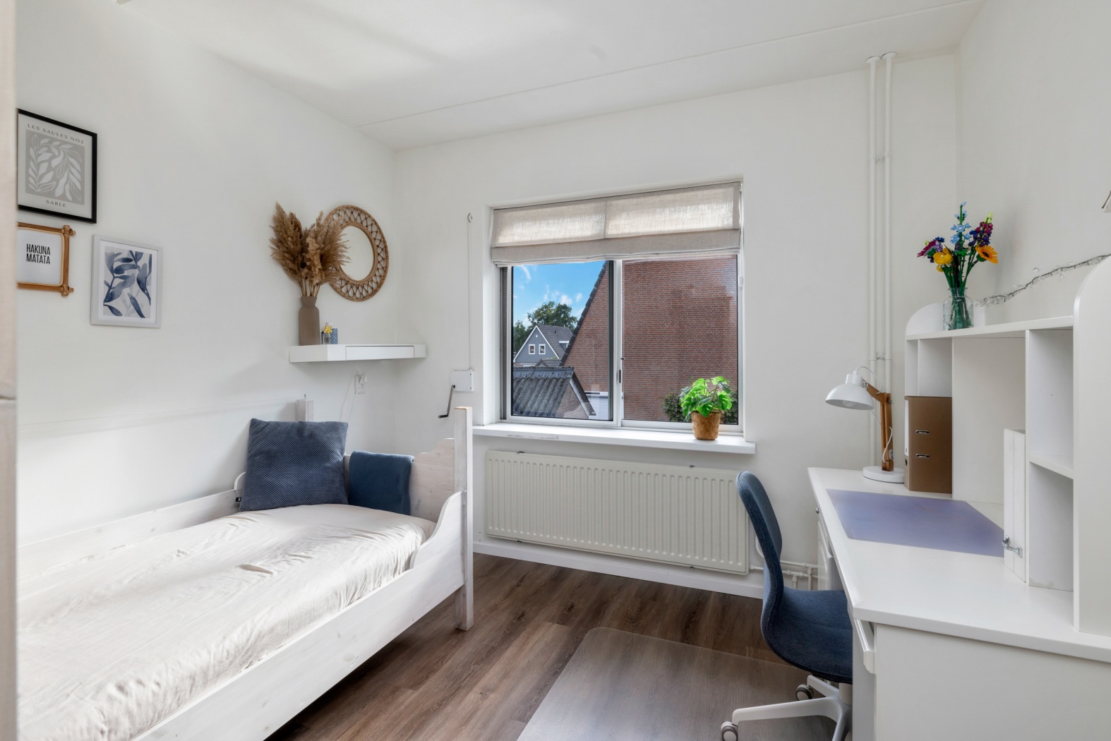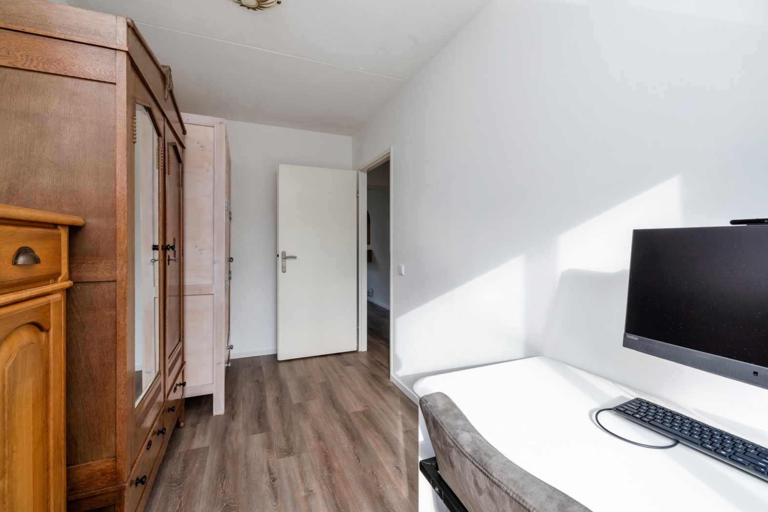Aansluitend bevindt zich een ruime vierde slaapkamer (of werk-/hobbykamer, wat jij wilt!) met twee dakramen, een laminaatvloer en bergruimte achter de knieschotten. Vanuit de kamer is er bovendien een deur naar een extra bergkast.