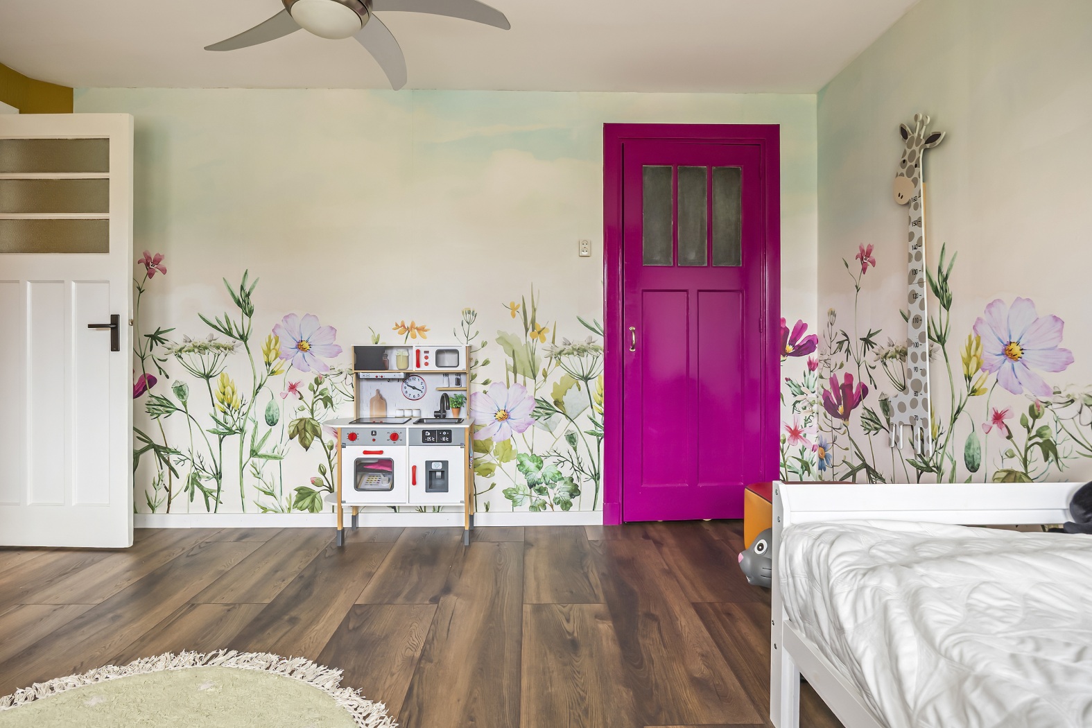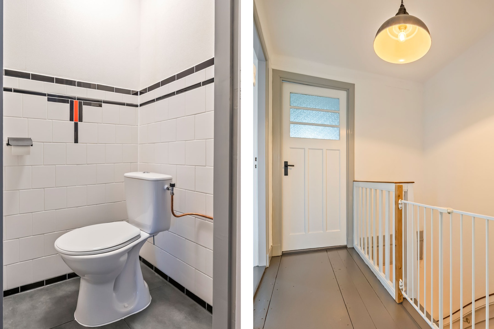 De overloop met karakteristieke paneeldeuren biedt toegang tot het separate toilet, de drie slaapkamers en de badkamer.