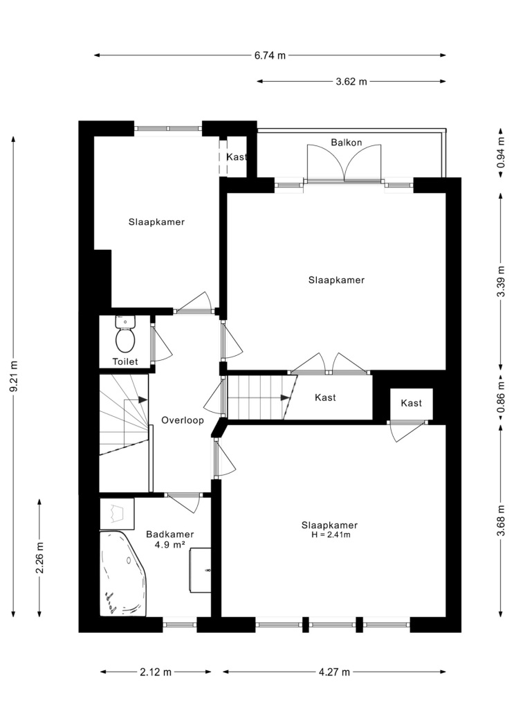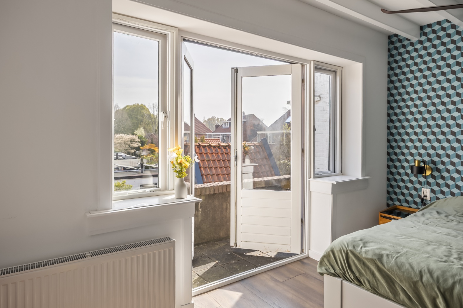 •Eerste verdieping met drie slaapkamers, allen voorzien van vaste kasten; één slaapkamer beschikt over een balkon en royale inbouwkast