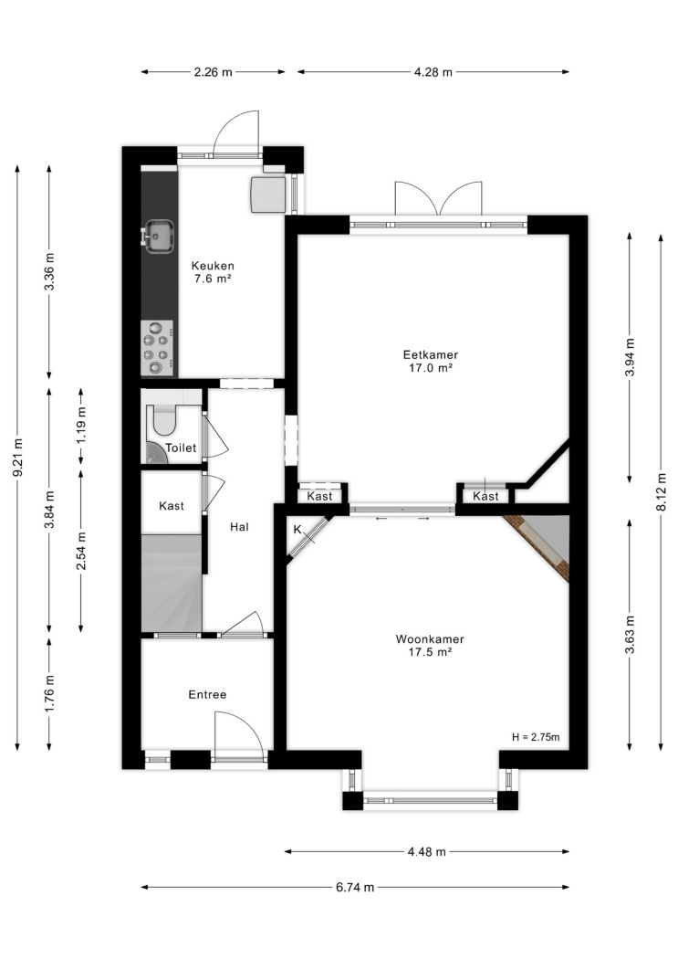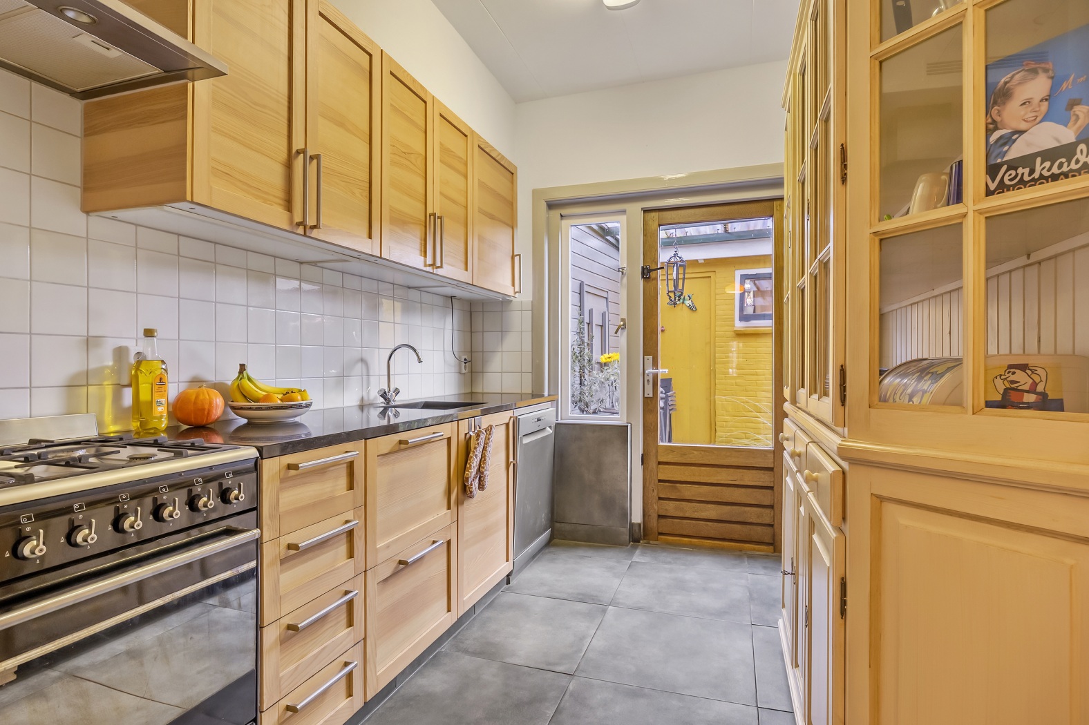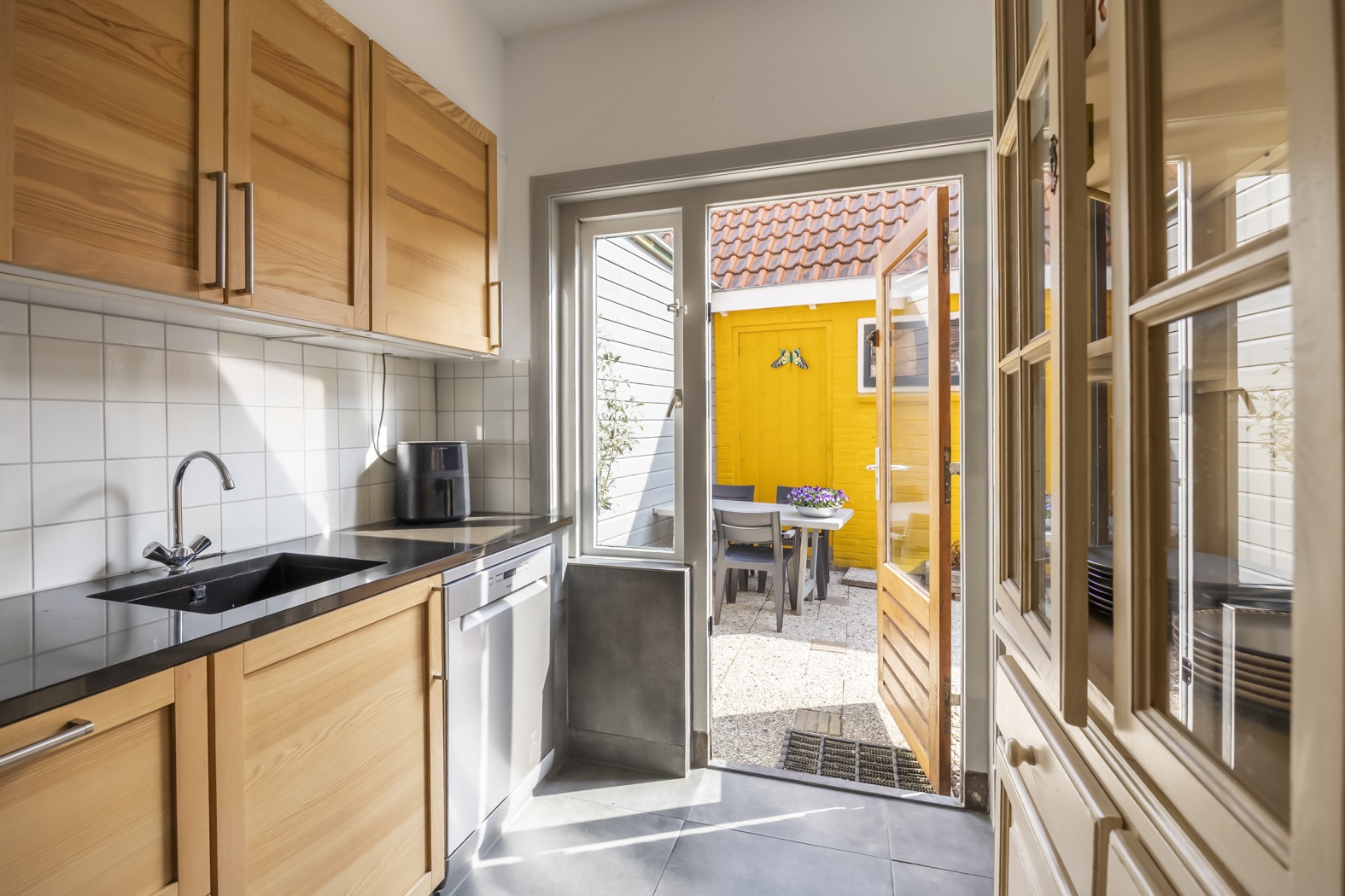 De keuken is apart gelegen en beschikt eveneens over een deur naar de tuin — praktisch en prettig, precies zoals het ooit bedoeld is en nog altijd zo fijn werkt.