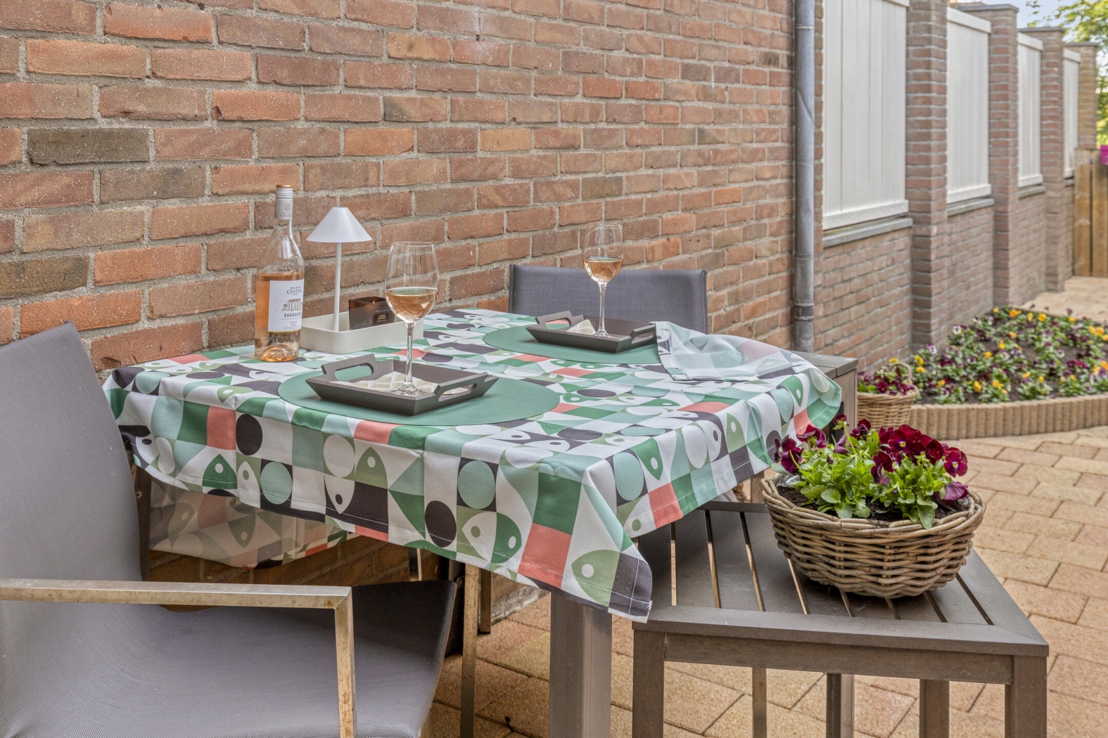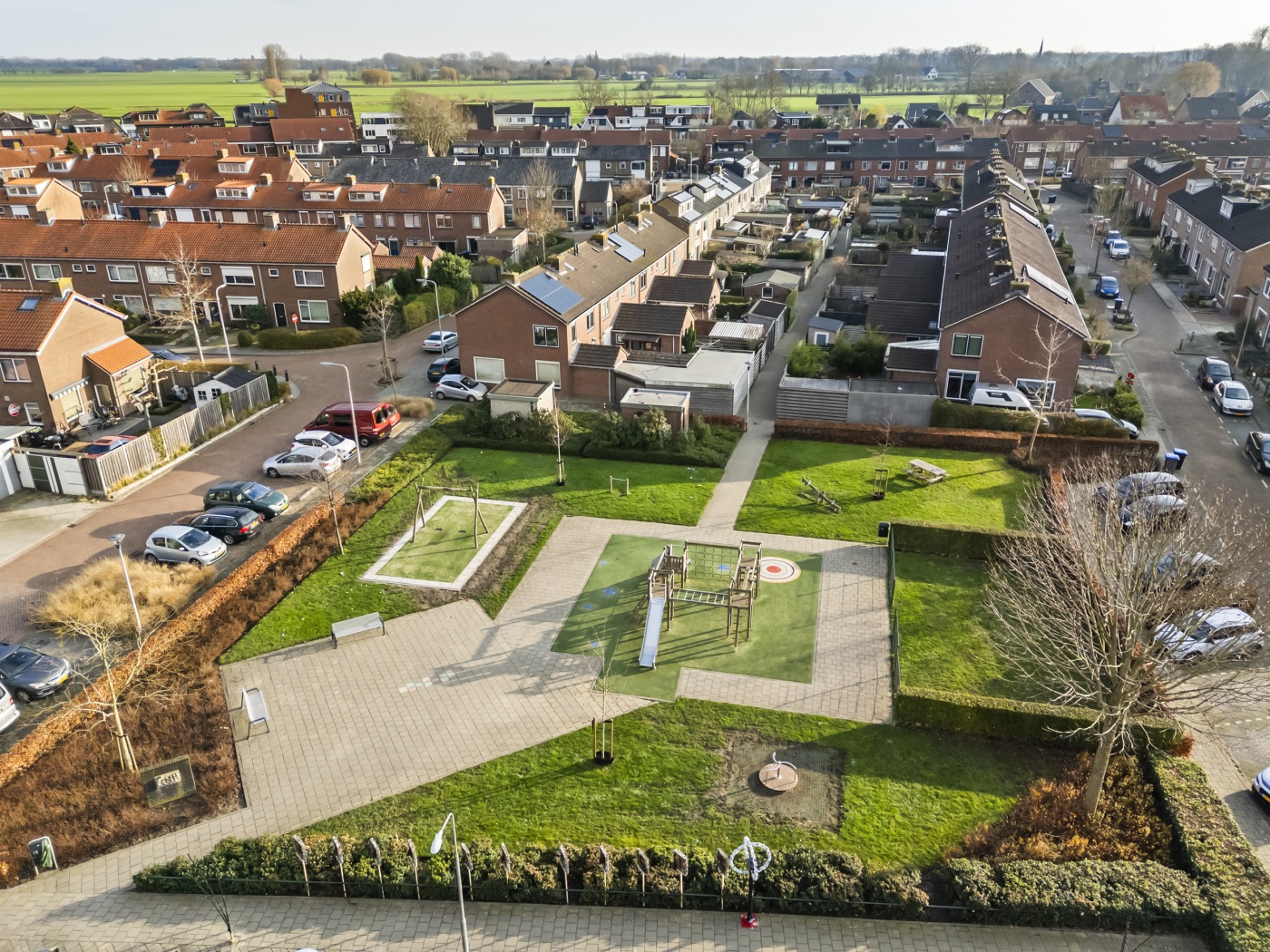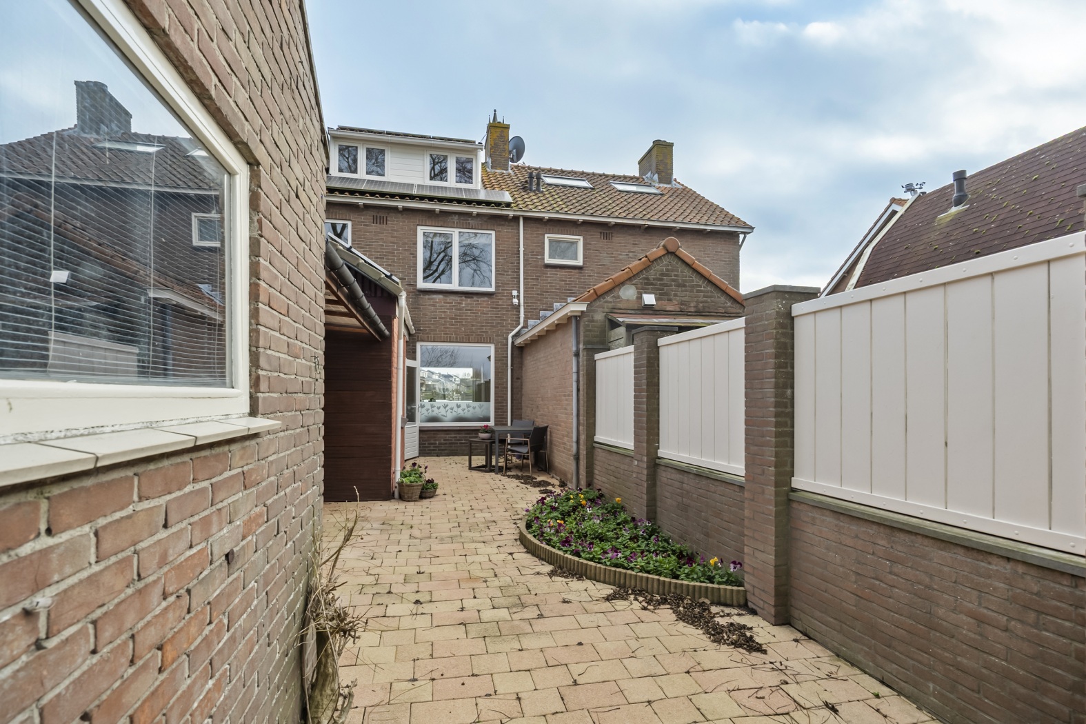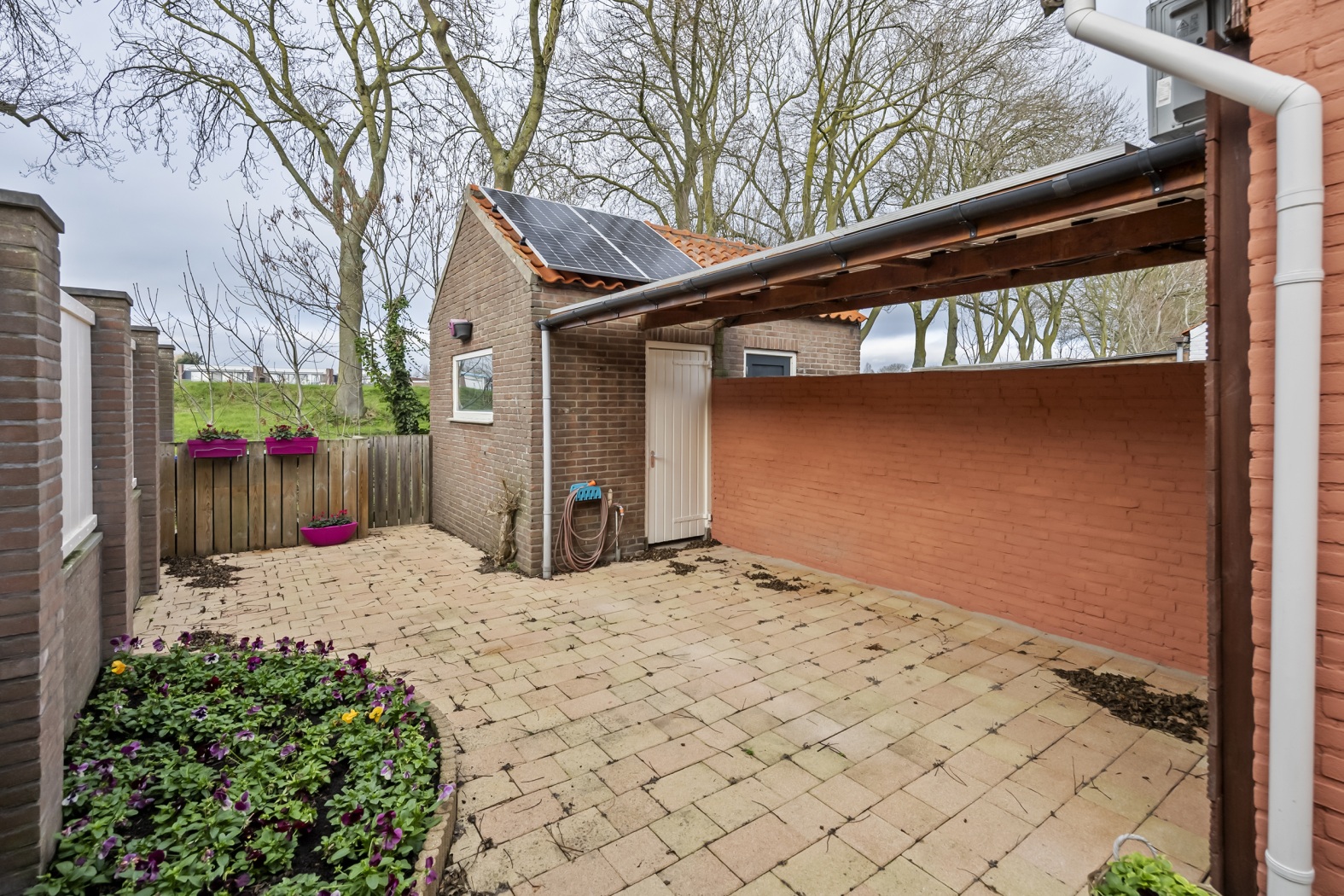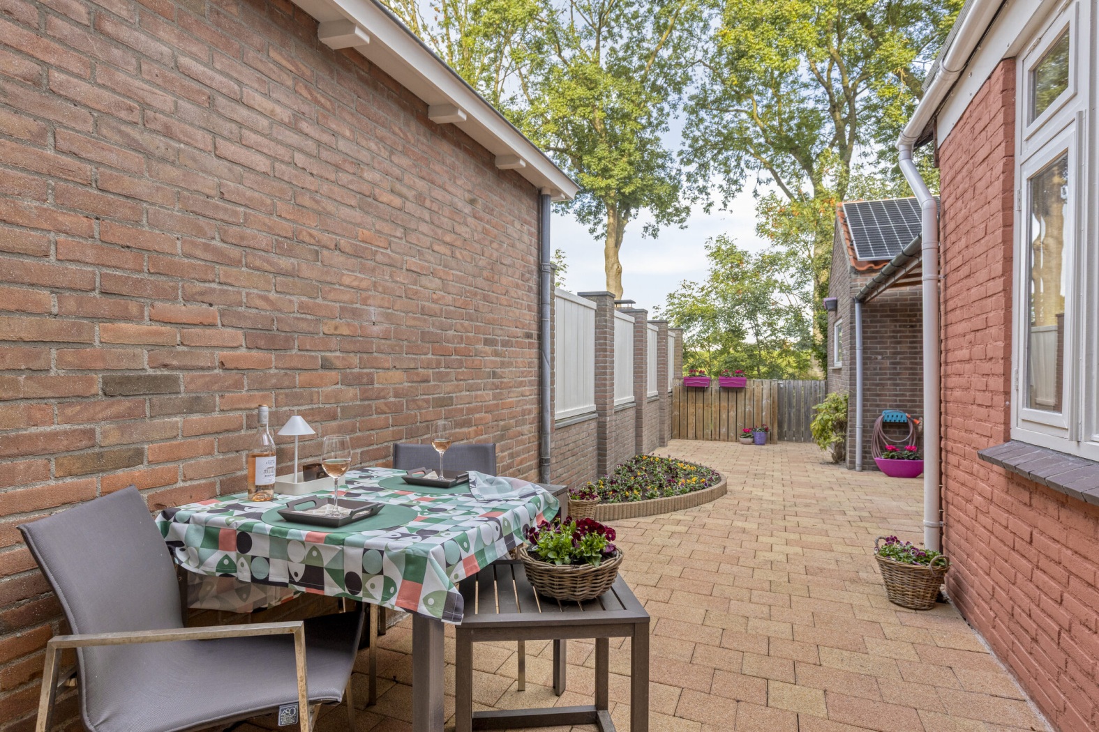 De voortuin is volledig bestraat en biedt de mogelijkheid om je auto op eigen terrein te parkeren. De achtertuin, gelegen op het noordwesten, is onderhoudsvriendelijk ingericht en voorzien van bestrating. Direct aan de uitgebouwde keuken bevindt zich een terrasoverkapping van circa 10 m²: een fijne plek om beschut te genieten. Achterin de tuin staat een stenen berging met handige vliering en er is natuurlijk een achterom.