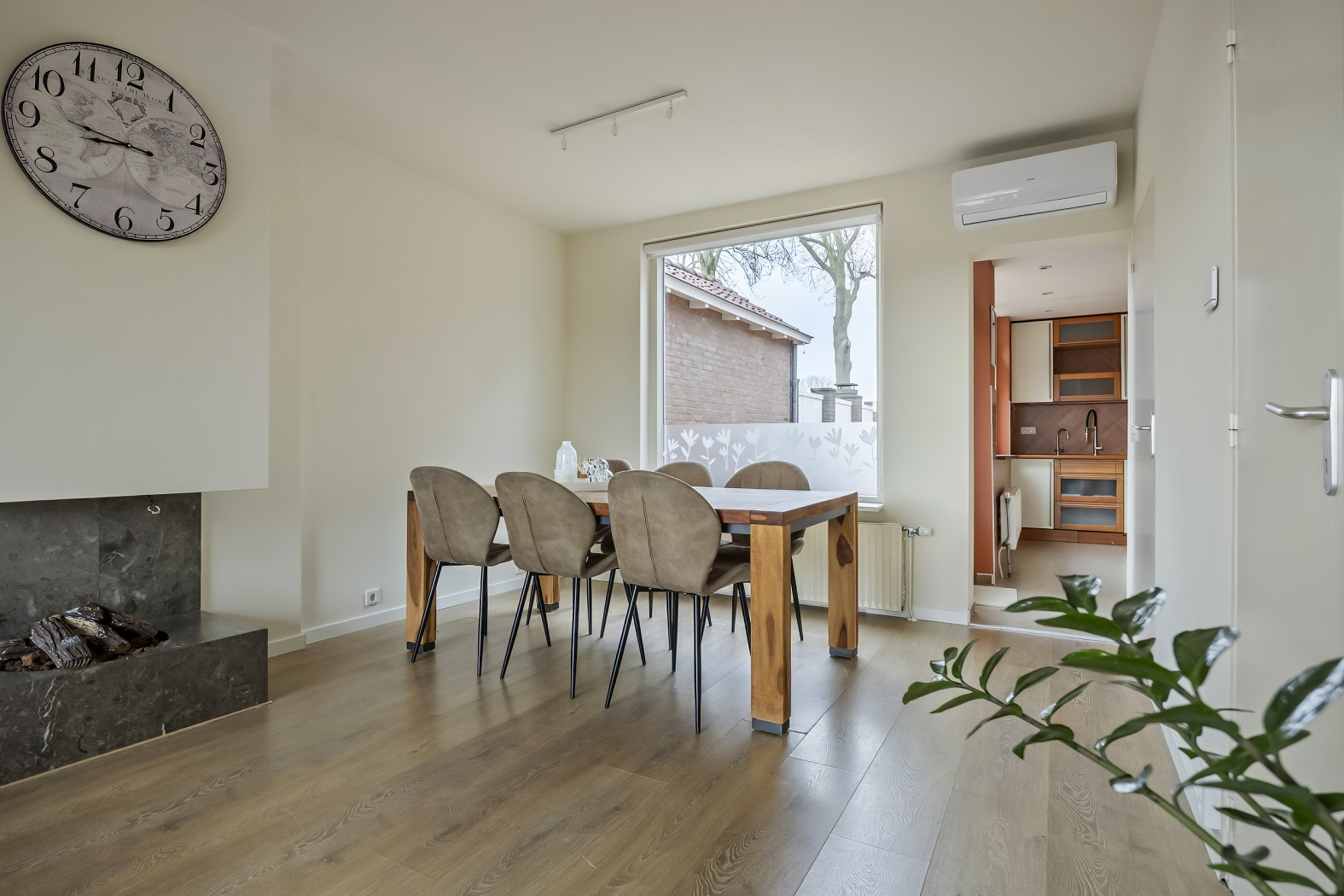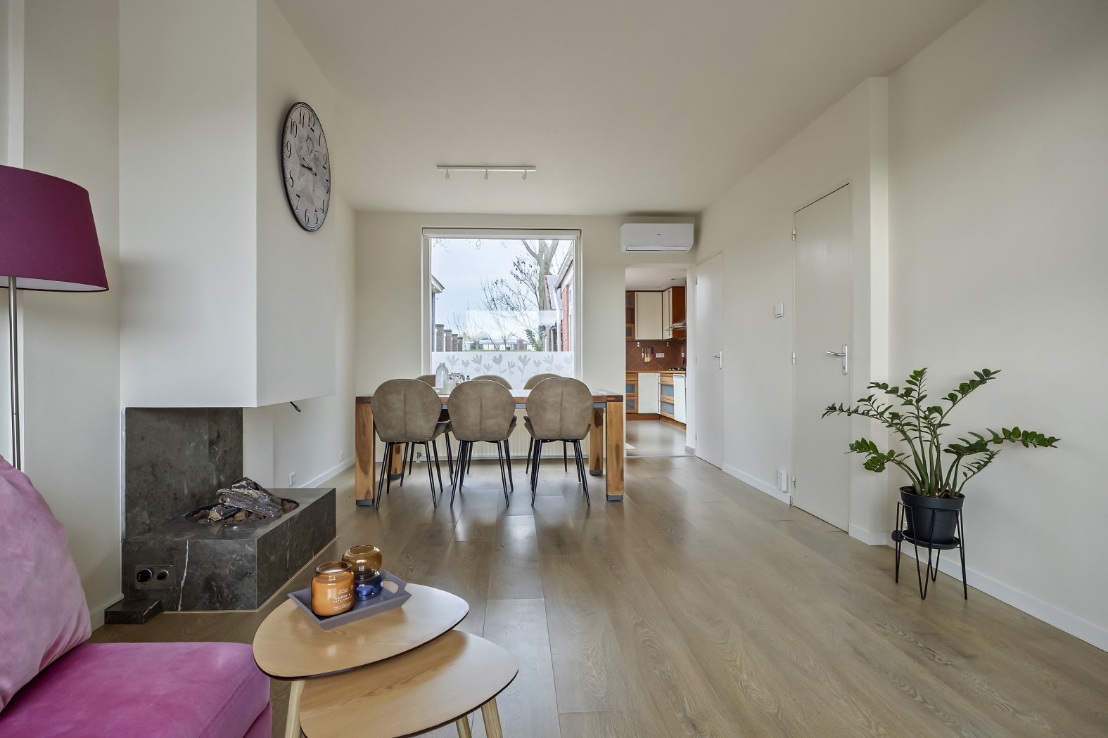 De woonkamer voelt meteen als een plek waar je je thuis voelt. De strakke haard met gaskachel zorgt voor extra sfeer tijdens knusse avonden, terwijl de grote ramen aan de voor- en achterzijde de woonkamer vullen met natuurlijk daglicht en een vrij uitzicht bieden op de speeltuin aan de voorzijde van de woning. De laminaatvloer geeft het geheel een verzorgde uitstraling en voor extra comfort is er airconditioning aanwezig. Handig is ook de trapkast, ideaal voor al die spullen die je liever uit het zicht houdt. Daarnaast vind je op de begane grond een toiletruimte.