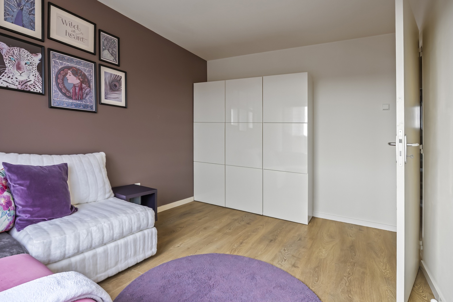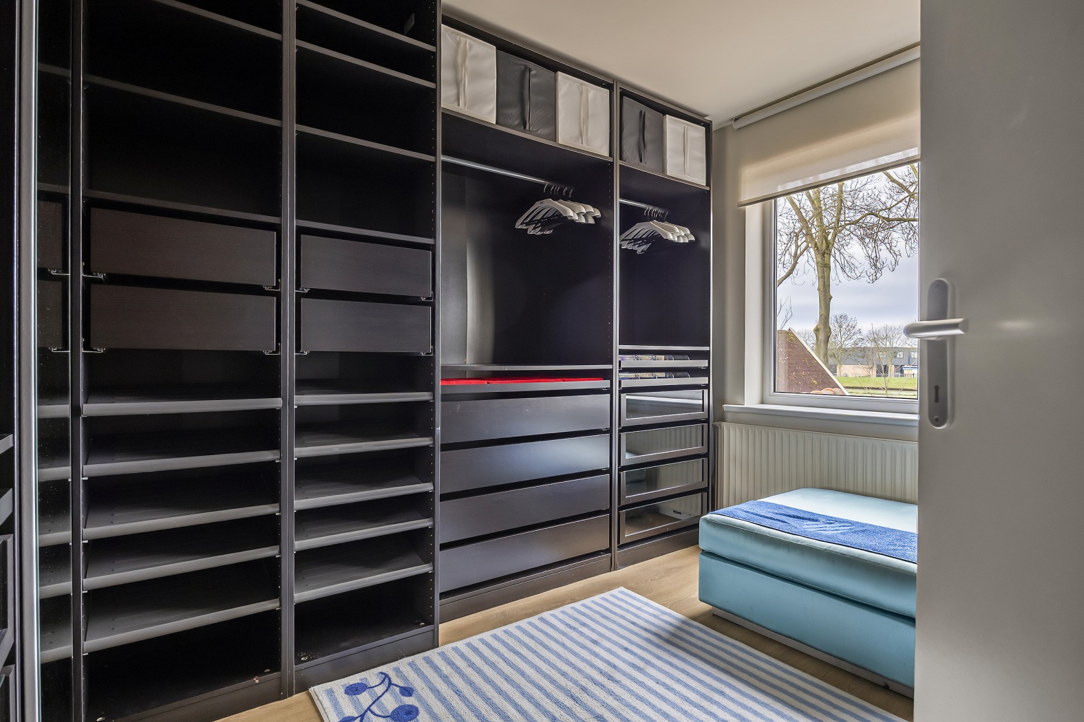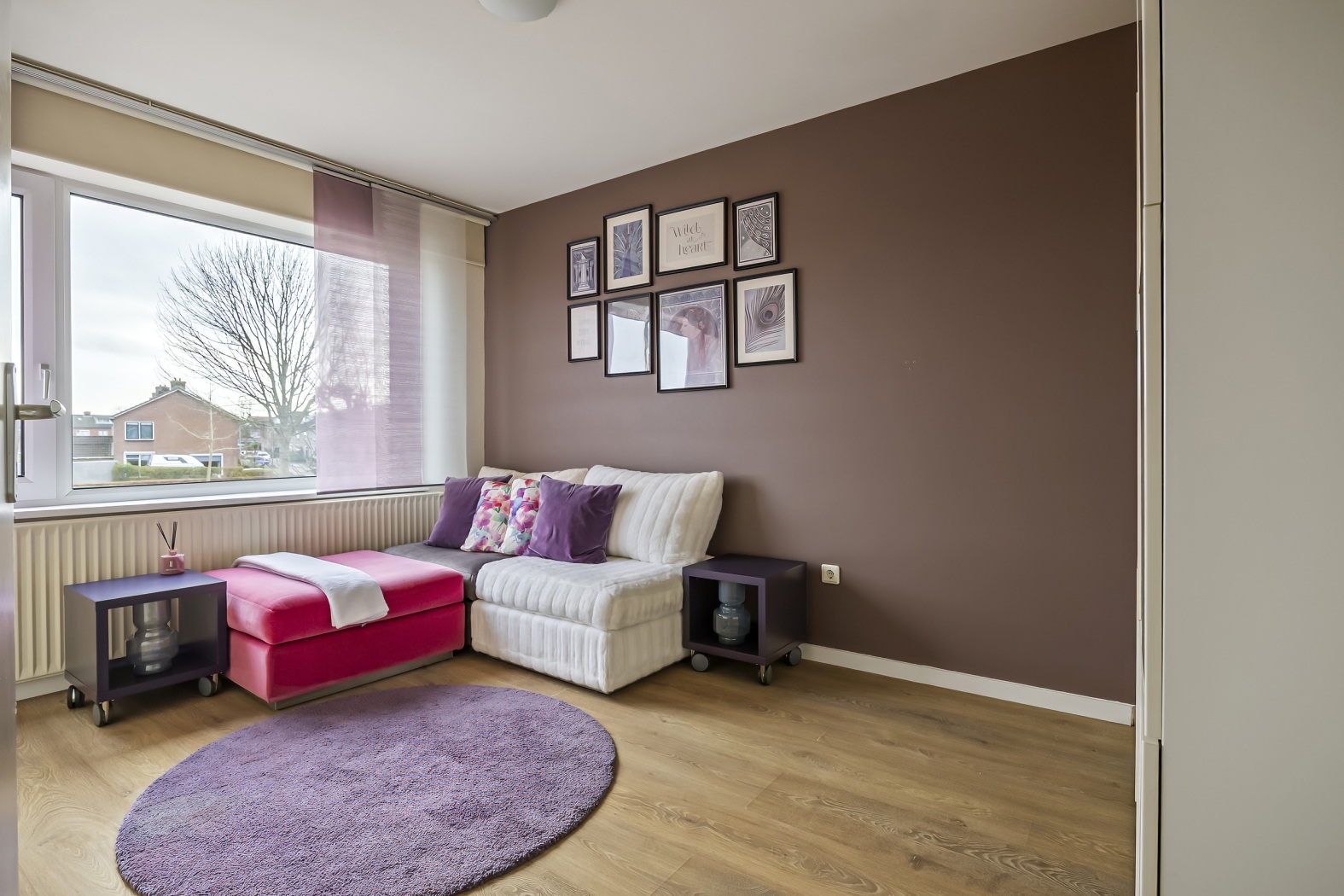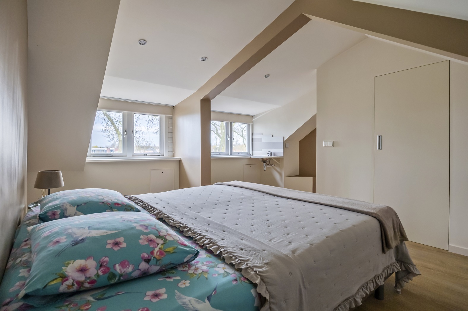 Via een vaste trap bereik je de tweede verdieping. Dankzij de royale, woningbrede dakopbouw is hier een ruime vierde slaapkamer ontstaan, compleet met eigen wastafel. Daarnaast vind je er een praktische kast met de cv-installatie en wasmachineaansluiting. Achter de knieschotten is volop bergruimte aanwezig en de laminaatvloer maakt het geheel netjes af.