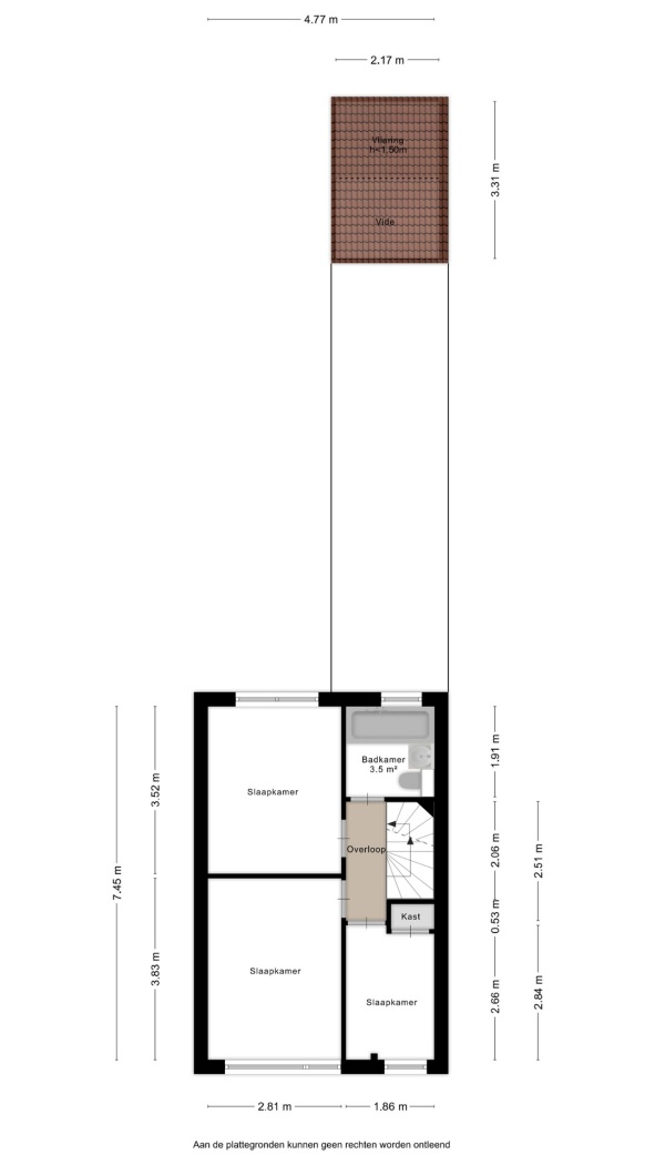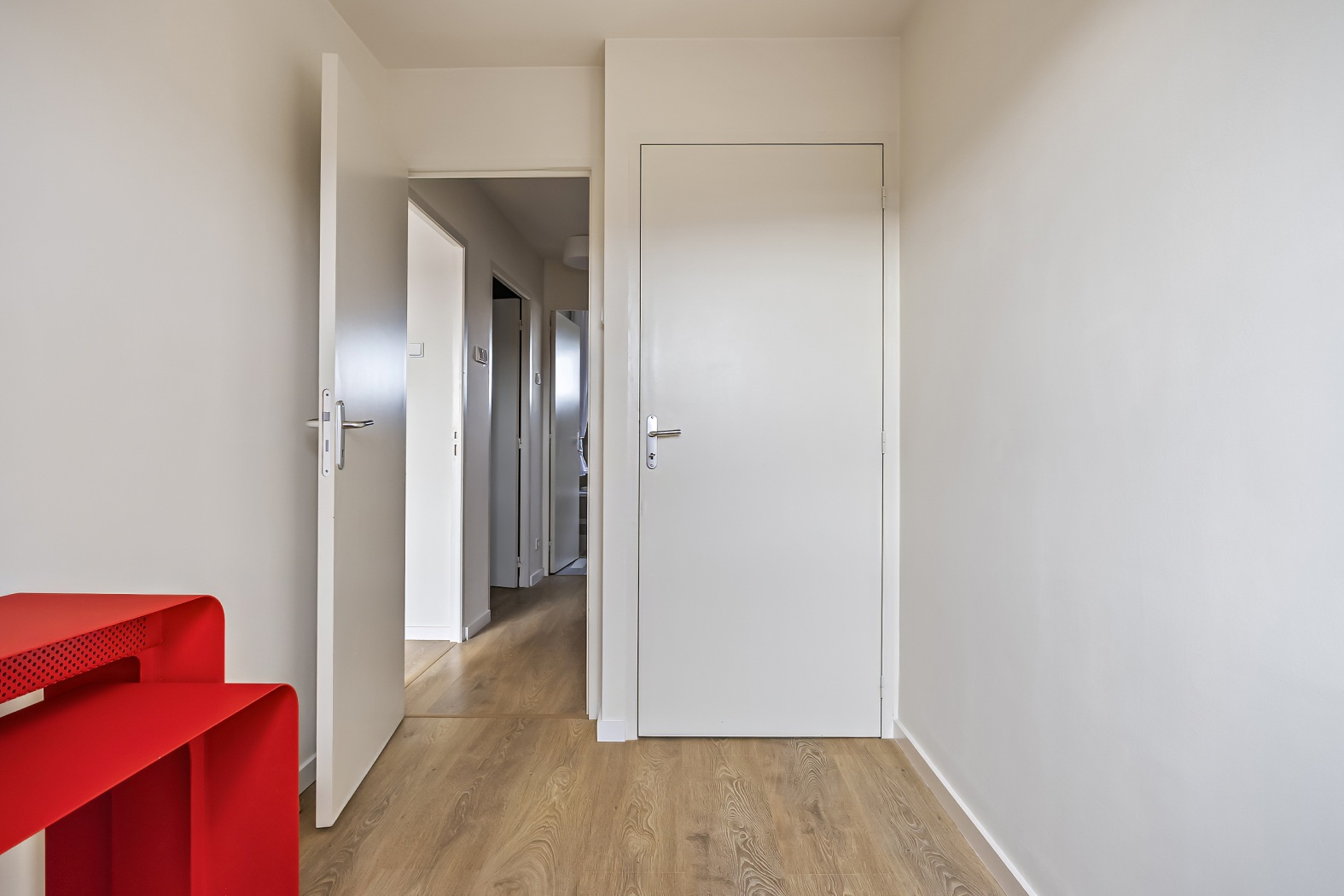 Op de eerste verdieping vind je drie slaapkamers: één aan de achterzijde en twee aan de voorzijde. In één van de kamers is bovendien een praktische vaste kast aanwezig – ideaal voor al je spullen die je liever netjes uit het zicht houdt.