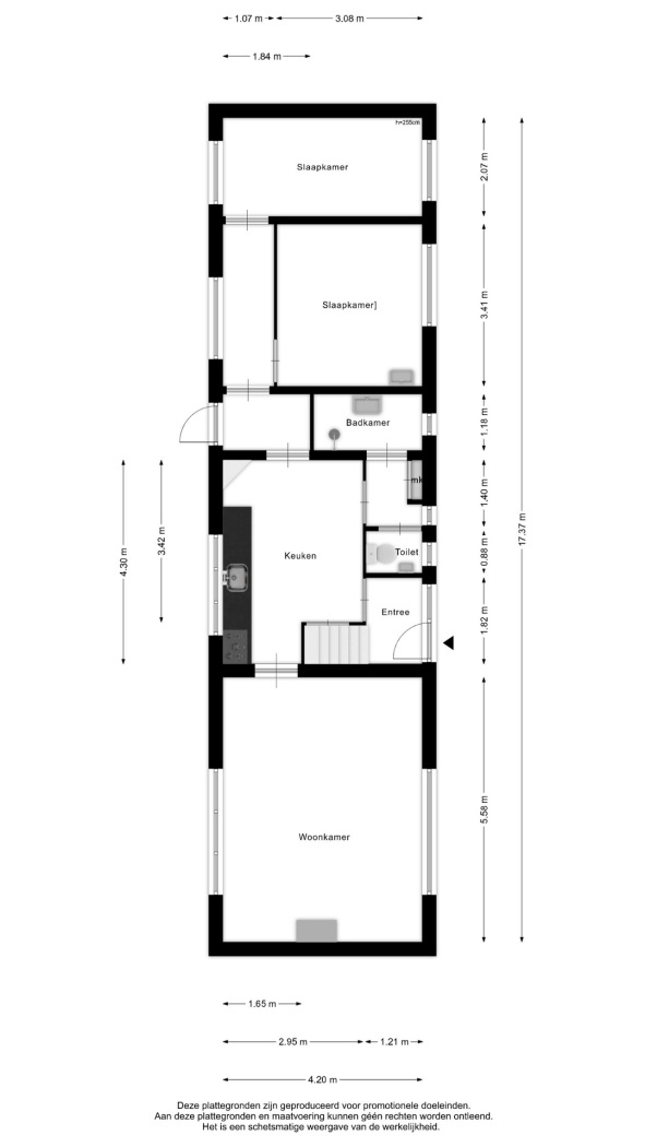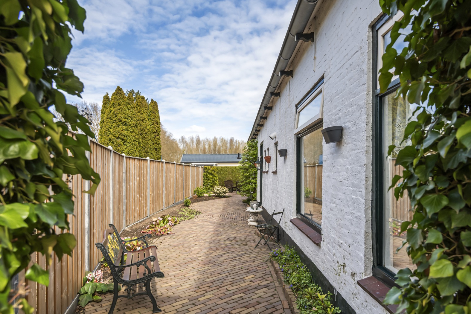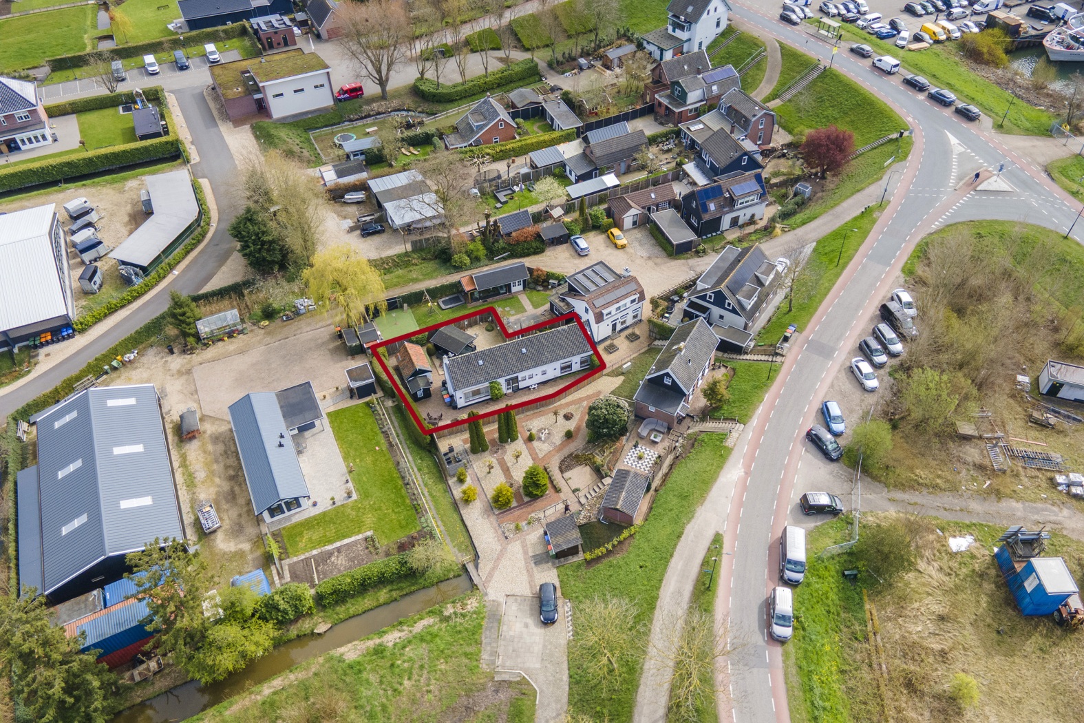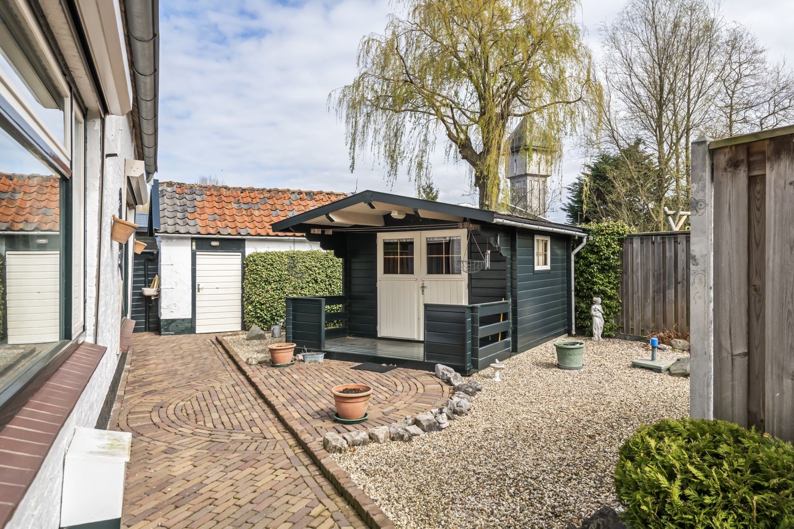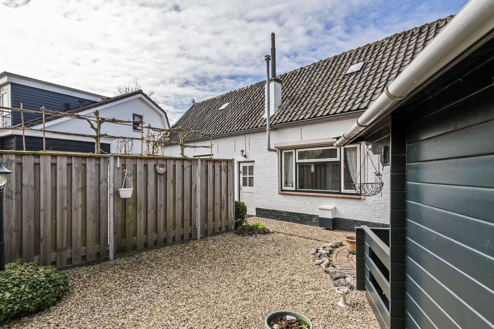 De woning is via een recht van overpad bereikbaar en staat op een ruim perceel van 295 m². Met een opvallende lengte van circa 17 meter en maar liefst drie schuren/bergingen is hier ruimte in overvloed – ideaal voor opslag, hobby of werk aan huis.
